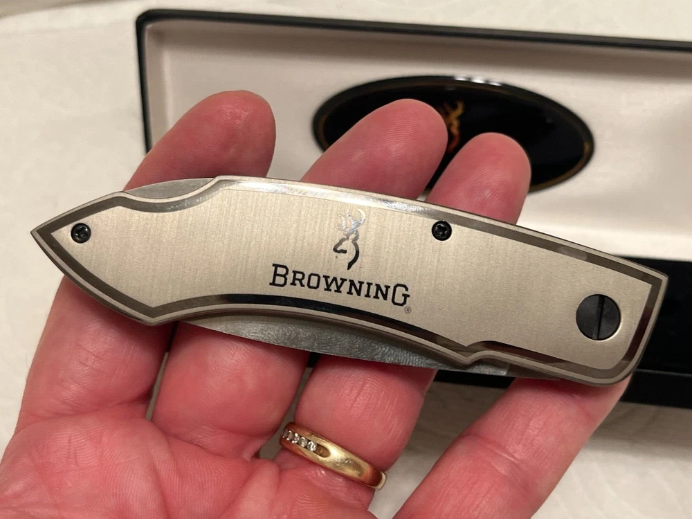Model: Classic Brand: Browning Lock Type: Lockback Blade Edge: Plain Country/Region of Manufacture: Taiwan Number of Blades: 1 Original/Reproduction: Original Opening Mechanism: Manual Blade Type: Clip Point Blade Range: 2.76 - 4in. Type: Pocketknife Blade Material: Stainless Steel Dexterity: Ambidextrous Handle Material: Stainless Steel Color: Silver