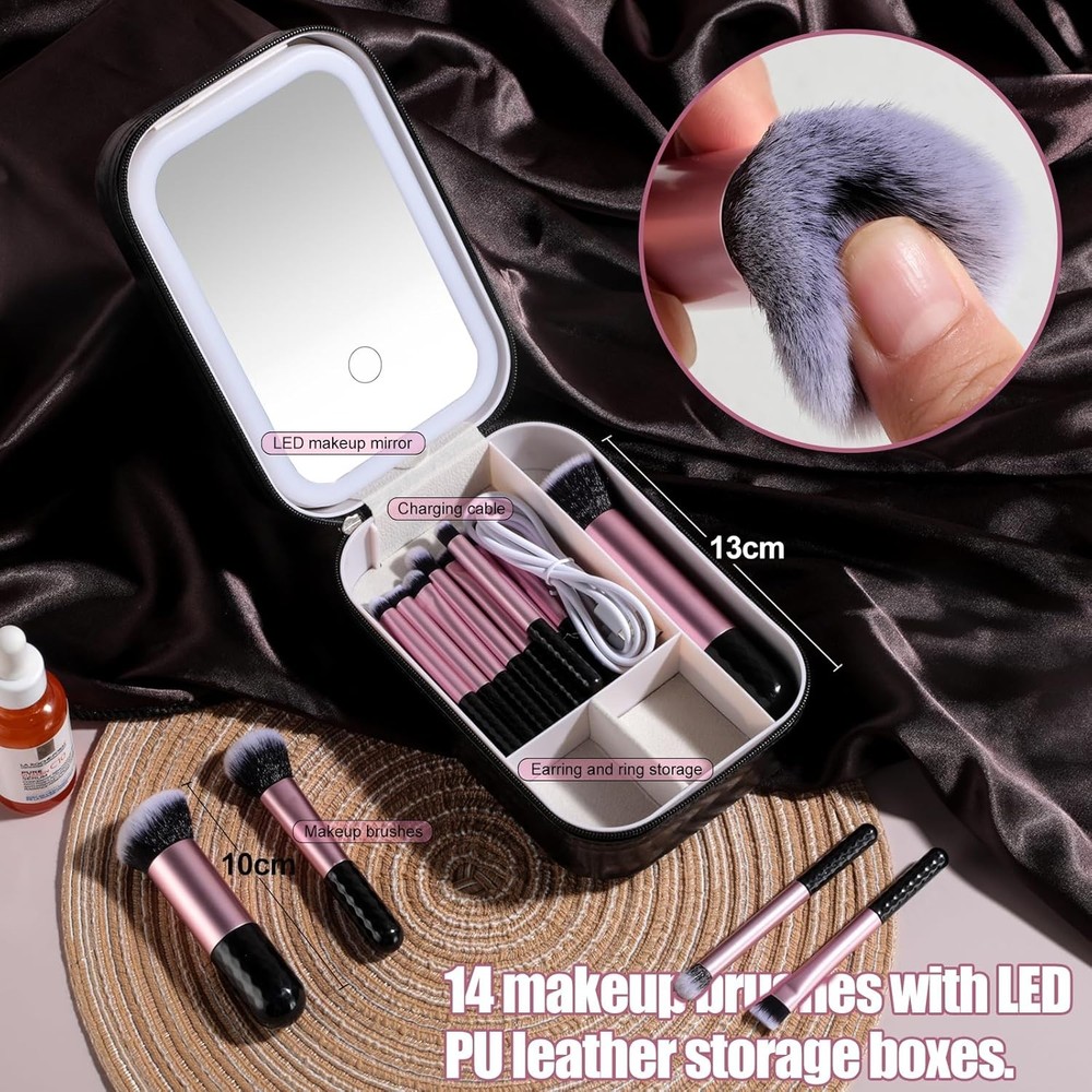 BS-MALL Makeup Brushes Set 14 Pcs with LED Light Mirror Cosmetic Tools Black Brand BS-MALL Bristle Material Synthetic Recommended Uses For Product Blending, Eye Makeup, Face Makeup, For Contouring, For Highlighting Color Black Material Plastic Handle, Synthetic Bristles Item Form Brush Set Number of Pieces 14 Handle Material Plastic, Wood Ferrule Material Aluminum Item dimensions L x W x H 1.9 x 1.5 x 1.2 inches Features 💄Comprehensive 14-Piece Design: The BS-MALL Makeup Brushes Set includes a thoughtfully curated collection of 14 essential brushes, catering to all your makeup application needs in one sleek black cosmetic set. 🌟Integrated LED Light Mirror: Equipped with a high-quality LED light mirror, this makeup brush set ensures precision and visibility during your beauty routines, even in low-light conditions. 💎Durable Black Finish: Crafted with a stylish and long-lasting black finish, the set exudes elegance while maintaining durability for everyday use. 🎒Professional-Quality Brushes: Featuring soft, high-density bristles, each brush is designed to provide smooth and effortless makeup application, enhancing your beauty experience. 🔋Compact Storage Solution: The set comes with a convenient storage case that keeps your brushes organized and protected, making it perfect for travel or home use. Our Business 100% Customer Satisfaction We go above and beyond to ensure you receive the best level of service. Returns We want you to be happy with your purchase, however in the rare occasion that you are not, please let us know and we will contact you to arrange either a collection or a refund. Please CONTACT US before leaving any negative feedback and we will promptly sort out any issue with your order. 7775012