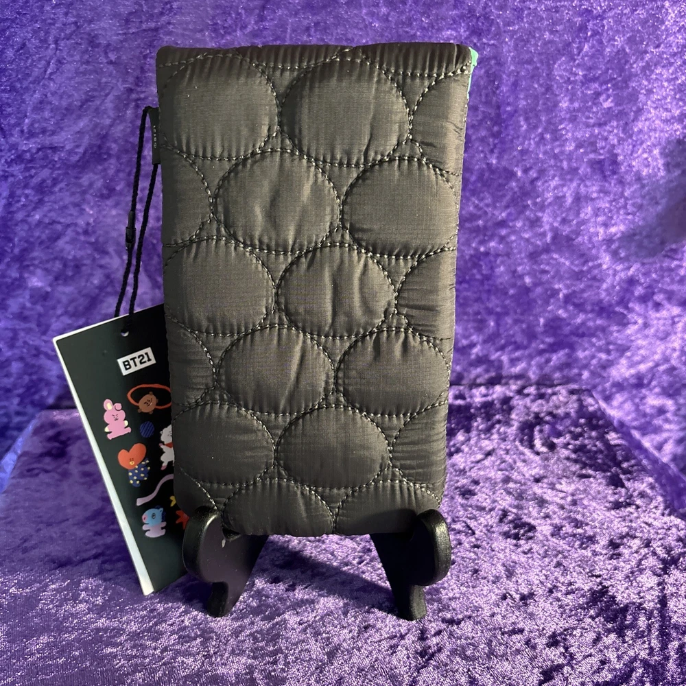 This BT21 Chummy Winter Padded Multi Use Pouch is the perfect addition to any wardrobe. Its compact size of 4 inches in width, 7 inches in height, and 6 inches in depth makes it convenient for carrying your essentials. The padded feature ensures that your items stay safe and secure. The cylinder shape and magnetic closure give it a unique and stylish look. The exterior color of black and green, along with the green lining, adds a pop of color to your outfit. This clutch style pouch is suitable for any occasion and is a must-have for any fashion-forward woman.