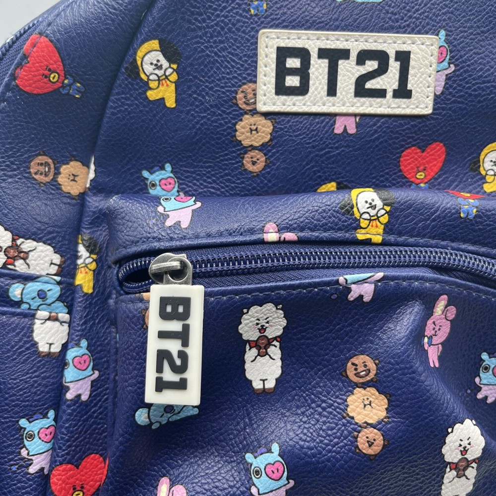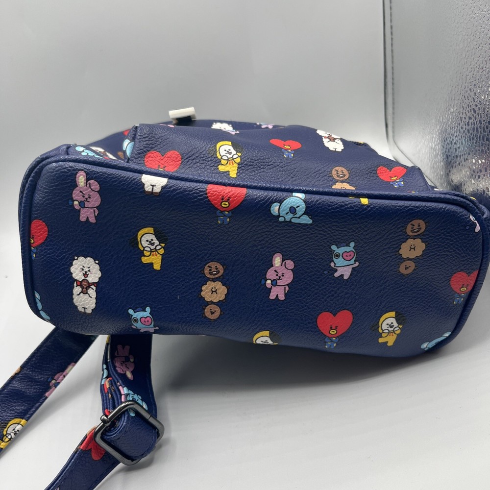 This adorable BT21 mini backpack is both stylish and practical! The navy faux leather looks sleek while the vibrant all-over print adds fun K-pop flair. Roomy enough for essentials with a smooth zip closure and sturdy straps, it keeps everything secure. The lined interior protects smaller items, and the compact size is perfect for daily outings or concerts. Super cute and well-madeâfans will absolutely love it! đ„°