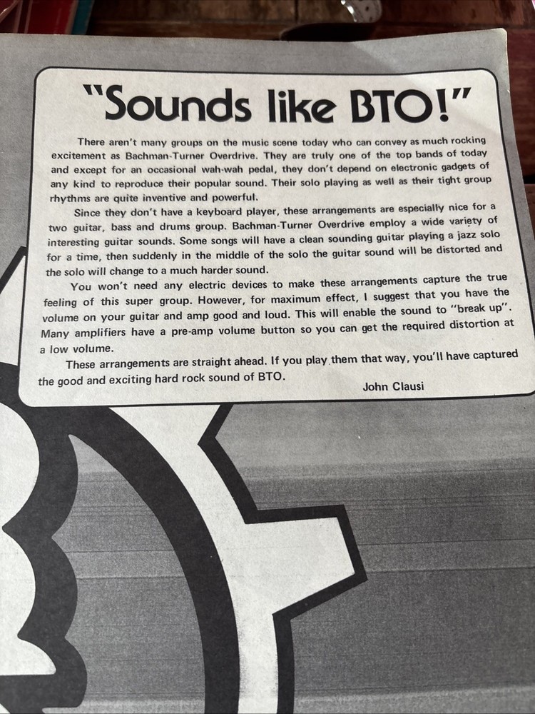 BTO for Guitar Sheet Music Book For Lead-Rhythm-Bass Guitar Copyright 1975