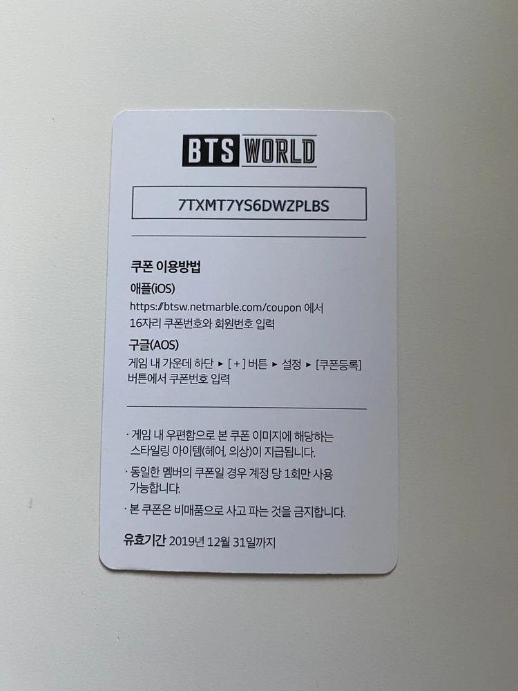 BTS WORLD OST Soundtrack Album Official Coupon Code Jin Pillow PC Photocard. Condition: Like New It’ll be shipped through letter mail, and packaged with penny sleeve/top loader