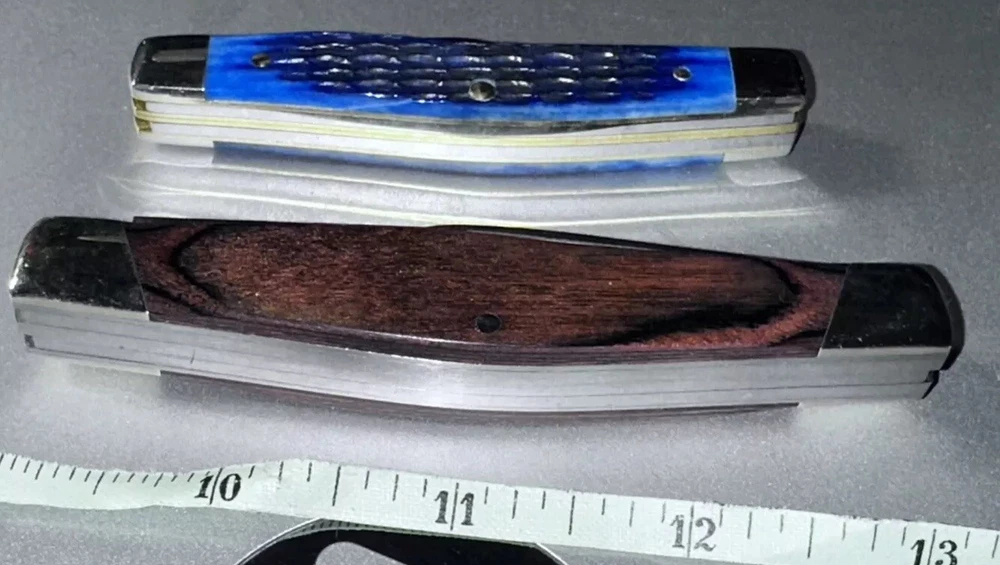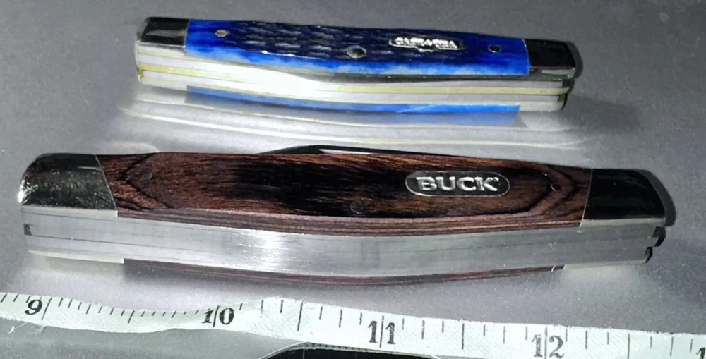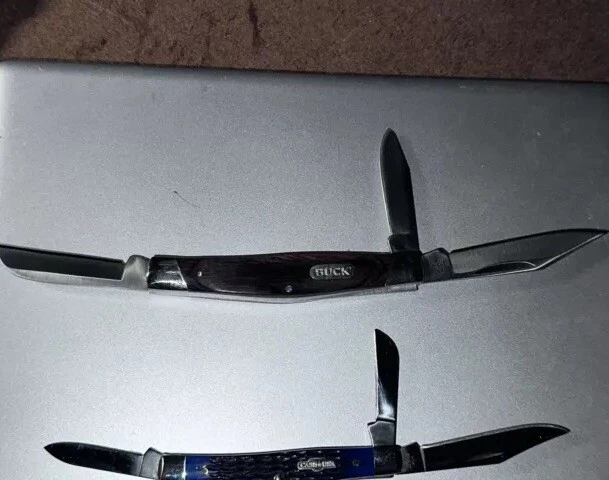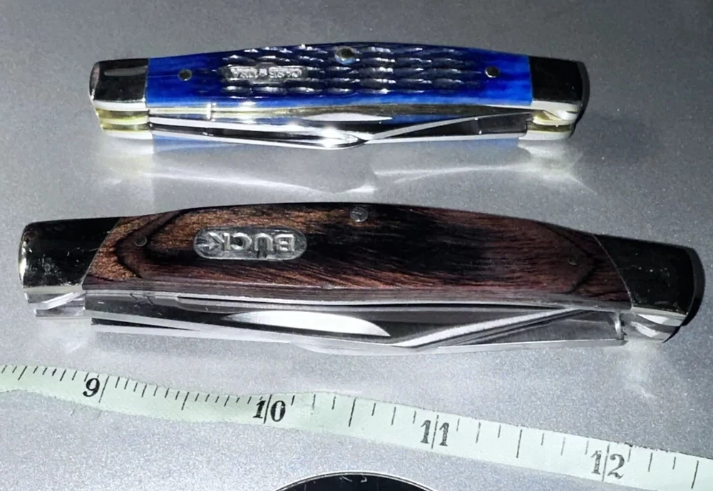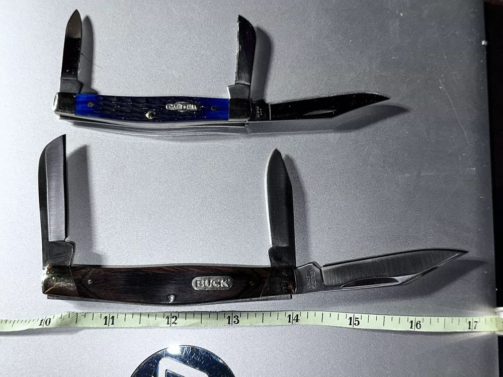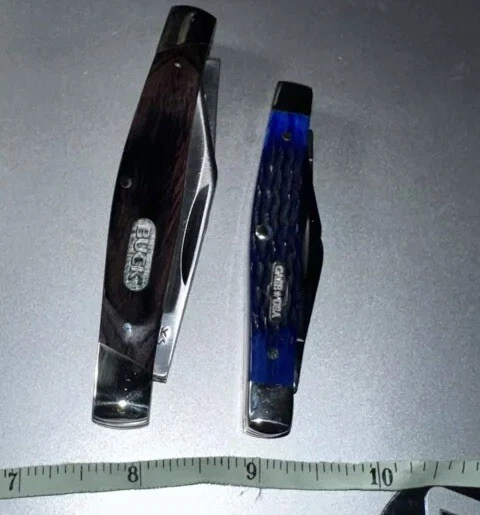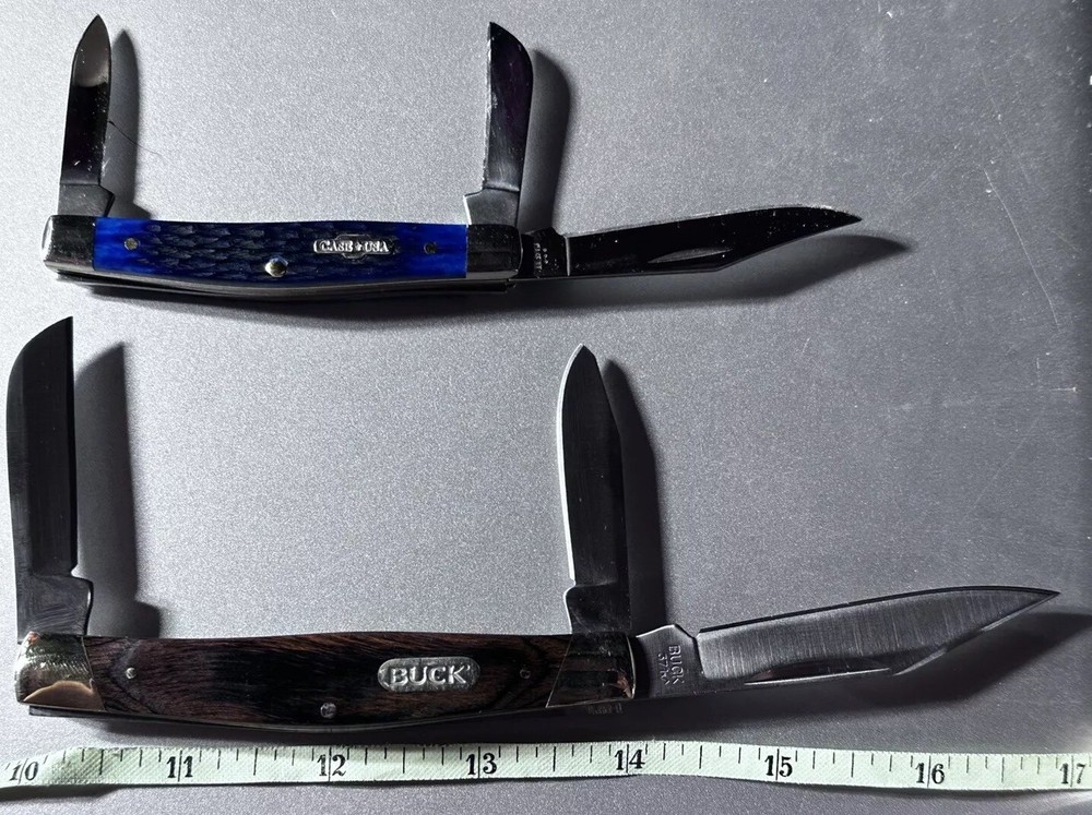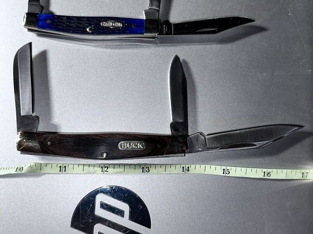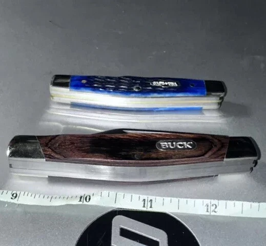 2-BRAND NEW NEVER USED 100% MINT CONDITION- BUCK AND CASE BRAND NAME TRAPPER 3- BLADES KNIVES! **** THESE ARE BOTH $$$ KNIVES ANS HIGHLY SOUGHT AFTER EDITIONS JUST LOOK AT ALL PICS AND USE ZOOM FEATURE FOR CLOSE UPS OF EAXH PICS FOR BETTER DETAILS **** NOTE: BOTH KNIVES ARE BRAND NEW W/OUT BOXES (SEE PICS 100% NEW!!) 1-BUCK&1-CASE 6344 KNIVES - NEW ITEMS- -AWESOME COMBO DEAL/#BU346RWS-USA-NEW W/OUT BOX NEVER USED KNIFE #1-: - BUCK KNIFE - NEW ITEM FROM BUCK - VANTAGE-AVID LARGE - 4 3/8" Closed length. LINERLOCK, Brushed finish stainless steel blade with Thumb slot, CNC contoured handles with Dymondwood inserts, BUCK shield inlay, Stainless pocket clip. This knife is great looking, good feel in the hand and quality made with smooth action. MADE IN THE USA #BU-346RWS [MSRP=$99.99] KNIFE #2- NEW W/OUT BOX Case XX 6344 Stockman Knife 2006 Rogers Corncob Blue Bone-NEW W/OUT BOX This knife for auction is a 2006 issue Case Blue Bone 6344 3 Blade Stockman, 3 1/4" closed, featuring the great looking Case "Rogers Corncob" Jigged Blue Bone (cattle bone) handles and the nickel silver Case USA Bowtie shield. This Case Blue Bone 6344 is stamped on the front tang of the master Clip blade with Case XX and 4 X's, dating it as a 2006 issue Case knife. The rear tang of the Sheepfoot blade is pattern stamped with USA 6344 SS while the small Spear blade is stamped with SS. All 3 blades are stamped and all 3 have good "walk and talk" snap. Please look at all the pictures and use the zoom feature to determine condition/style/size for. This came from a clean smoke/pet free household. Thanks for looking please checkout my other items I have listed & save on shipping costs. Any custom duties or taxes are the buyers cost, so please check your country import fees/taxes.