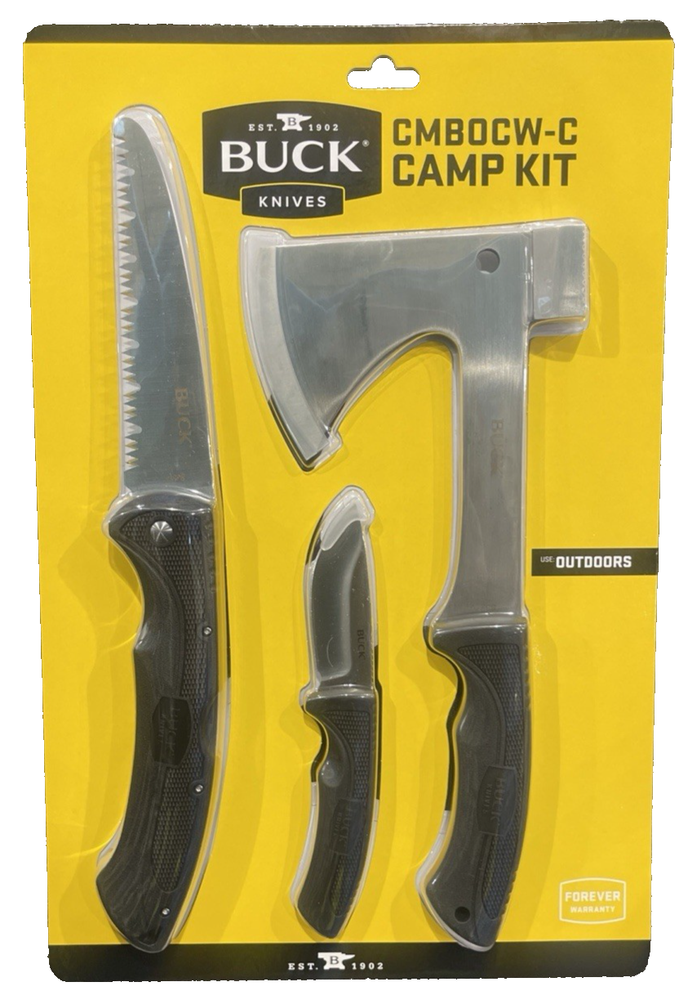 FAST FREE SHIPPING IN USA!!! ORDERS RECEIVED BEFORE 2PM - SAME DAY SHIPMENT!!! AFTER 2PM - NEXT DAY SHIPMENT!!! OUR WAREHOUSE WORKING MO-SAT(9am-9pm) CLEARANCE! Last pieces remaining—future availability currently unknown!!! "Discover our store! Explore a variety of interesting products at great prices. Don’t miss out—check it out now!" 🏕️ BUCK Knives Camp Kit – Folding Saw, Fixed Blade Knife & Axe with Sheaths Brand New • Factory Sealed • Premium Quality Gear Get ready for your next outdoor adventure with this BUCK Knives Camping Kit – a top-tier 3-piece set that includes everything you need for survival, camping, hunting, or general outdoor use. Whether you're clearing brush, processing firewood, or prepping meals at the campsite, this kit has you covered with the legendary quality BUCK is known for . 🔪 Included in the Kit: Folding Saw – Durable 6" blade perfect for cutting branches, brush, and small logs with ease. Fixed Blade Knife w/ Sheath – 3.2" drop point blade, ideal for precision cutting, food prep, and general tasks. Comes with a fitted sheath for safe carrying. Axe w/ Sheath – Rugged 6.26" blade, built for chopping, splitting, and all heavy-duty camp tasks. Includes protective sheath for safe transport. ✅ Product Highlights: BUCK Knives Quality – Trusted American brand with a long history of excellence in blade craftsmanship. All-in-One Solution – Three essential tools in one convenient package. Perfect for Camping, Survival, Hunting, Hiking, and Emergency Kits. Brand New – 100% Factory Sealed, never used or opened. Makes a Great Gift for outdoor lovers, preppers, or hunters. 💥 Don’t miss out – stock is limited! Fast shipping & careful packaging guaranteed. 📦 Order today and gear up with BUCK—the name outdoorsmen trust.