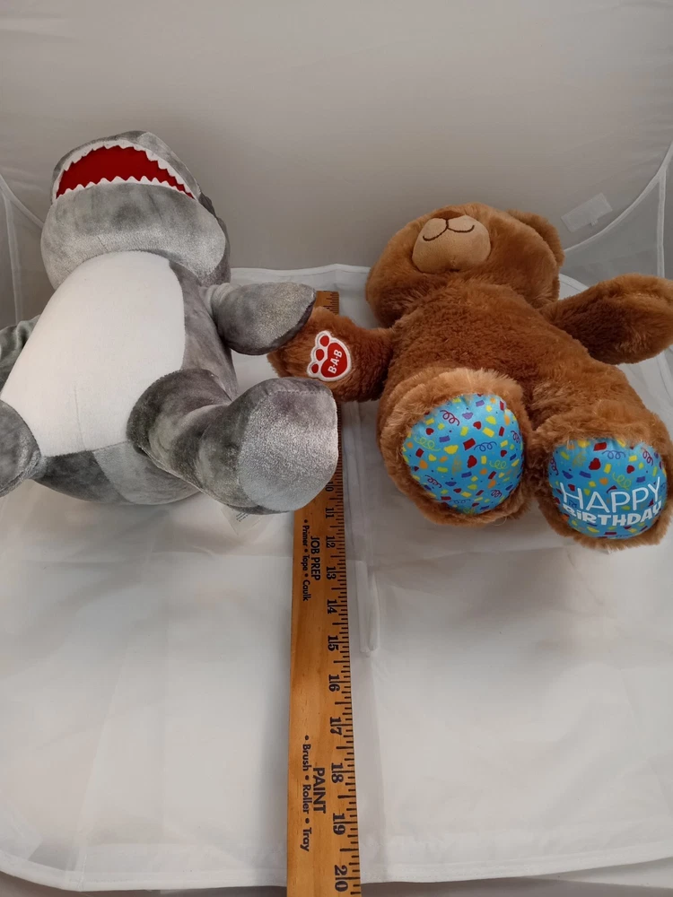 Immerse yourself in a world of imaginative play with the Build-A-Bear Workshop's Gray Toothy Great White Shark, standing at a playful 15 inches. This medium-sized, gray plush captures the essence of the ocean's majestic predator, crafted to perfection, showcasing the iconic Build-A-Bear quality and charm. It's an excellent addition to any collection or the ideal companion for someone special. Celebrate a special occasion with the delightful HAPPY BIRTHDAY BEAR, also a 15-inch plush from the renowned Build-A-Bear Workshop. This plush bear, adorned with a colorful birthday ribbon, is not just a toy but a keepsake to treasure. It brings a touch of joy and warmth to anyone's day, making it a wonderful gift for birthdays or just to spread a little happiness around.