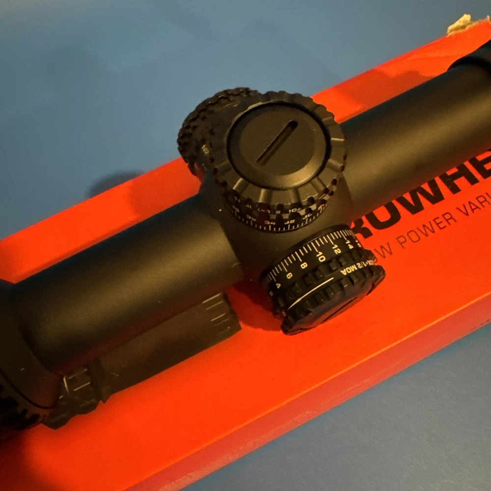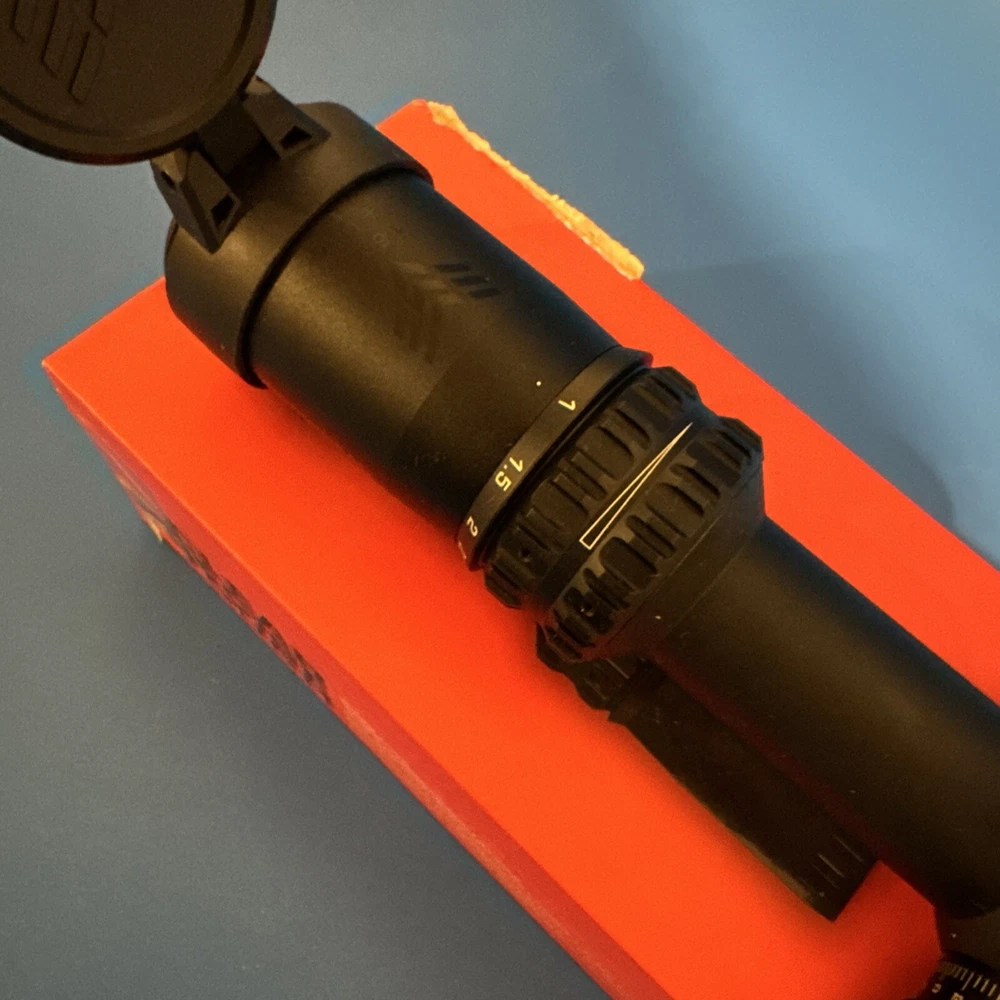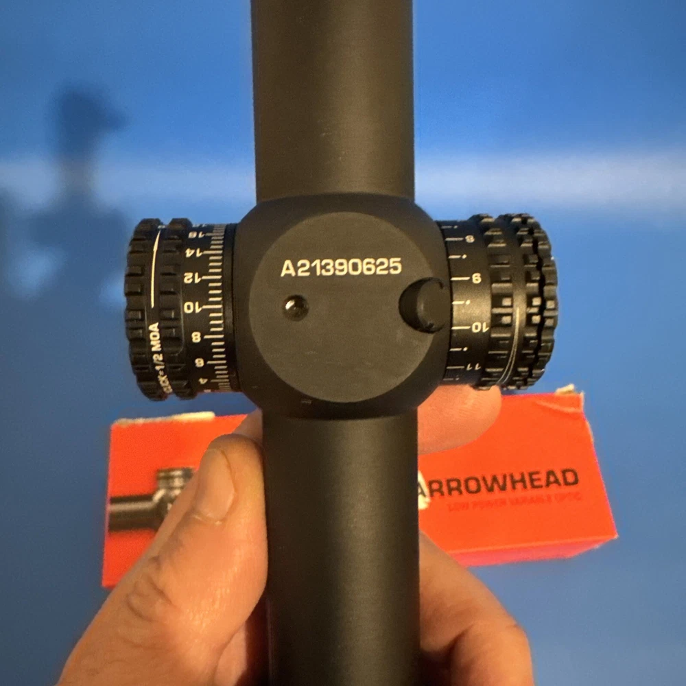 •State-of-the-art optical design creates a wider field of view without sacrificing eye relief. •Push/ Pull locking turrets lock in any position to prevent unwanted adjustments without using tools. Zero resettable using a coin or screwdriver. •True 1x user experience with a flat, fast sight picture, great eye box and brightness even at full magnification. •13 red reticle illumination brightness levels, 2 are super low light compatible. "OFF" detents between each brightness level. •Included throw lever bolts directly to the magnification ring.