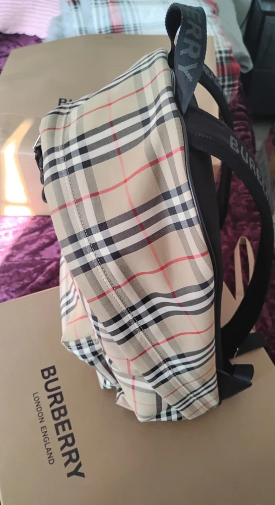 Style:BackpackTheme:DesignerModel:BURBERRY Number 8016106Department:MenClosure:ZipColor:BeigeBrand:BurberryVintage:NoMaterial:CanvasSize:MediumLining Material:Canvas