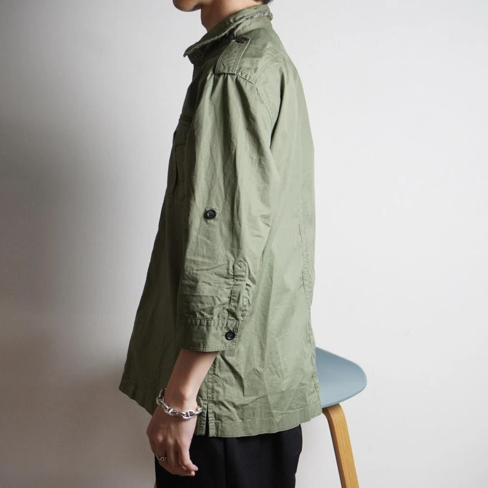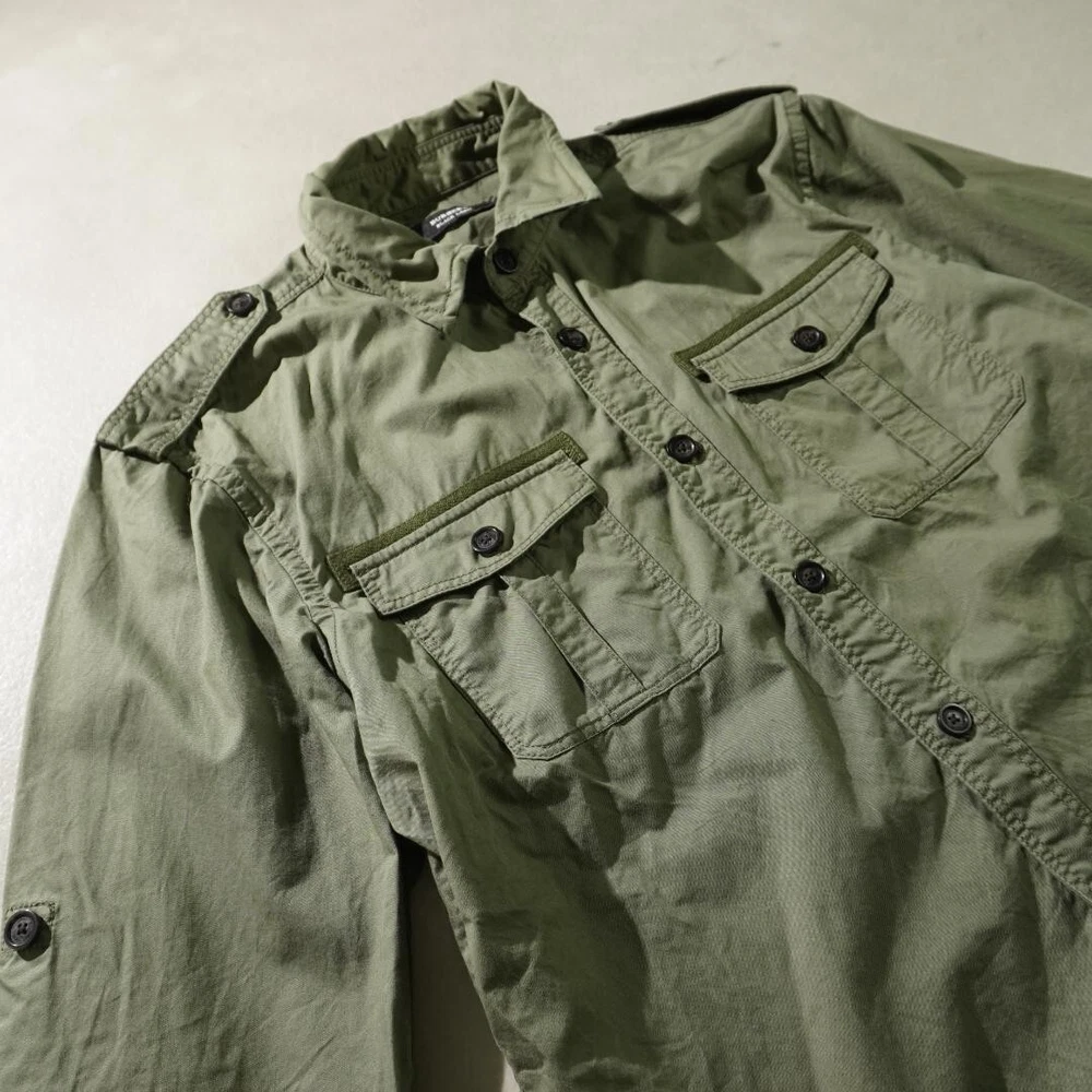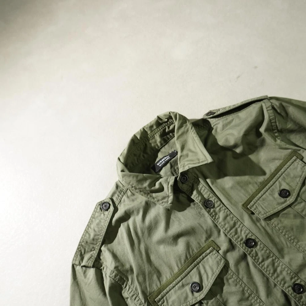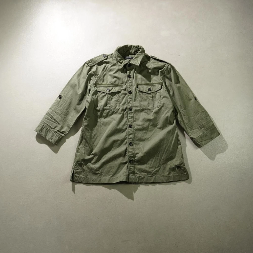 BURBERRY BLACK LABEL Long Sleeve Work Shirt Khaki Military Men Size 3/M-L Used