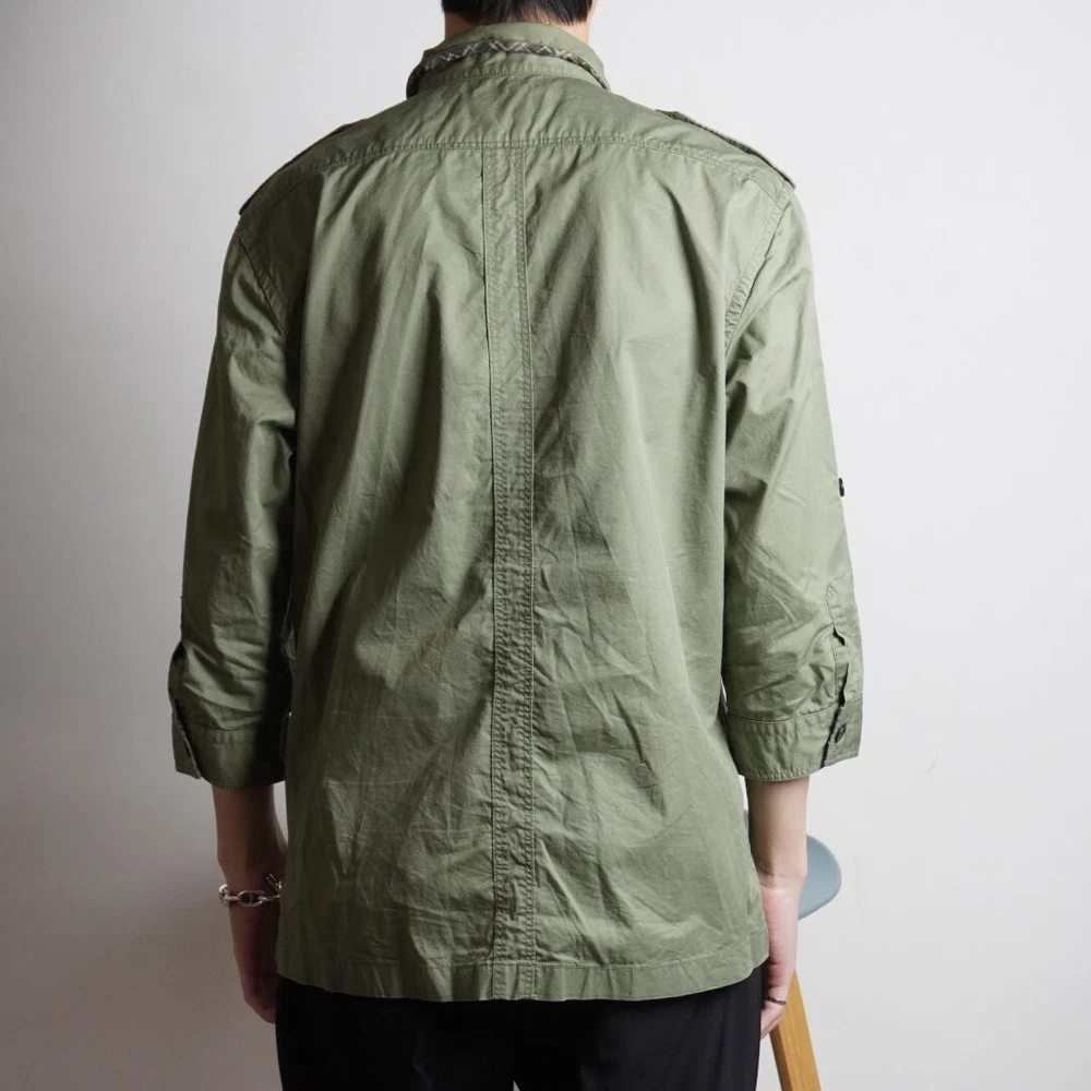 Sleeve Length: 3/4 Sleeve Fit: Slim Personalize: No Handmade: No Closure: Button Character: NA MPN: NA Color: Green Fabric Type: NA Occasion: Business, Casual, Travel Department: Men Features: Pockets UPC: Does not apply Vintage: No Material: Cotton Size: 3 Garment Care: NA Product Line: NA gtin13: Does not apply Size Type: Regular Pattern: Solid Accents: Button Season: Fall, Spring, Winter Neckline: Collared Chest Size: 40.9 in Brand: Burberry Collar Style: NA Theme: Military Model: NA Type: Button-Up