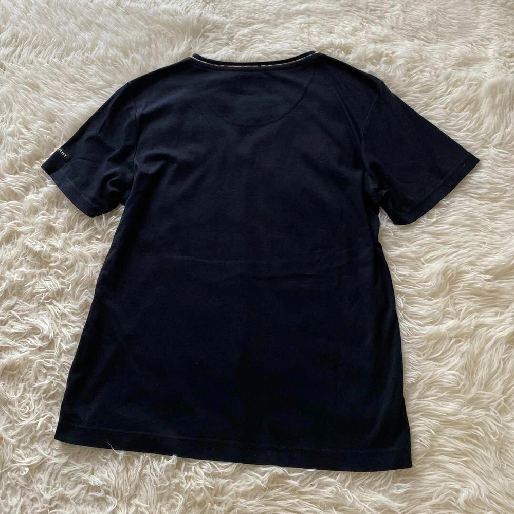 Material: Cotton Accents: Embroidered Garment Care: NA Handmade: No Sleeve Length: Short Sleeve Type: T-Shirt Closure: Pullover Strap Type: NA Sleeve Type: NA Personalize: No Occasion: Business, Casual, Travel gtin13: Does not apply Vintage: No Department: Women Pattern: Check Season: Fall, Spring, Summer Size: L Features: NA Brand: Burberry Neckline: Crew Neck Country/Region of Manufacture: Japan Character: NA Fabric Type: NA Color: Black Style: Basic Fit: Slim UPC: Does not apply MPN: NA Theme: NA Size Type: Regular