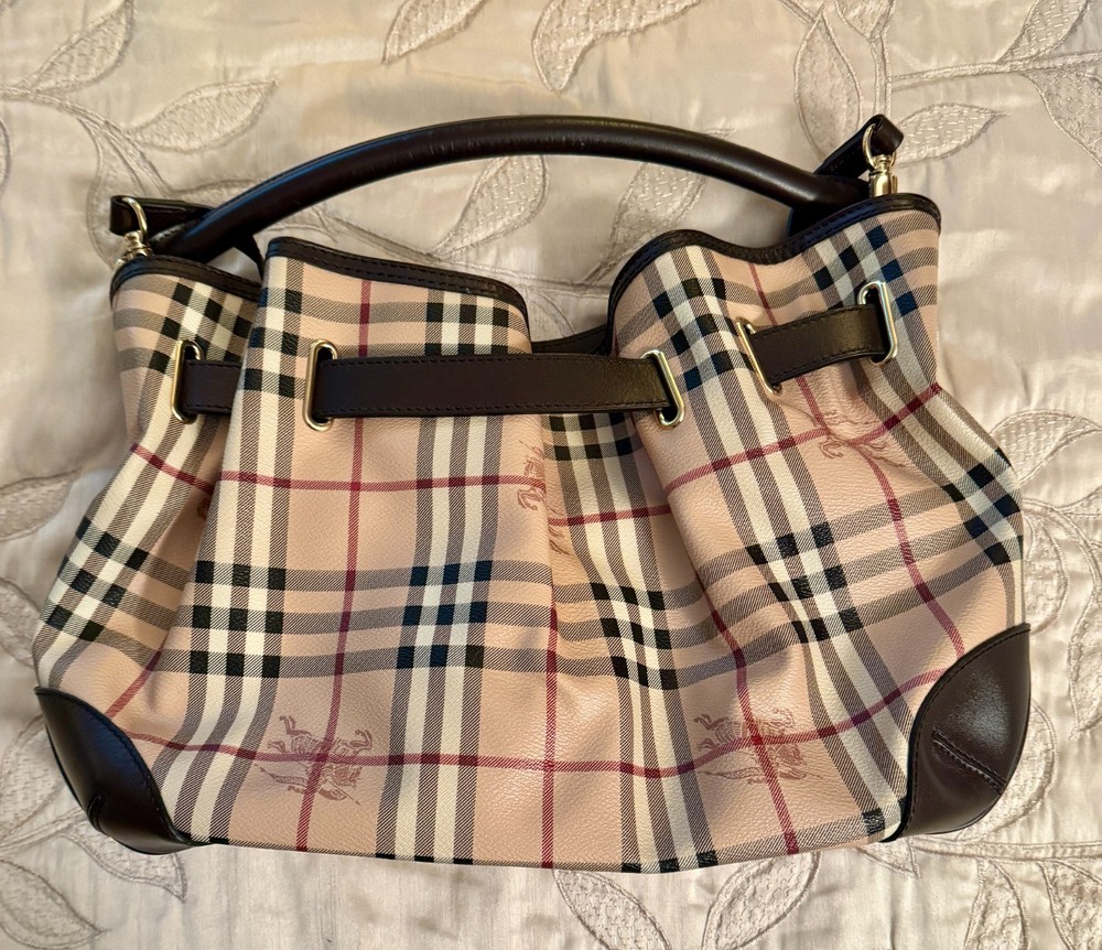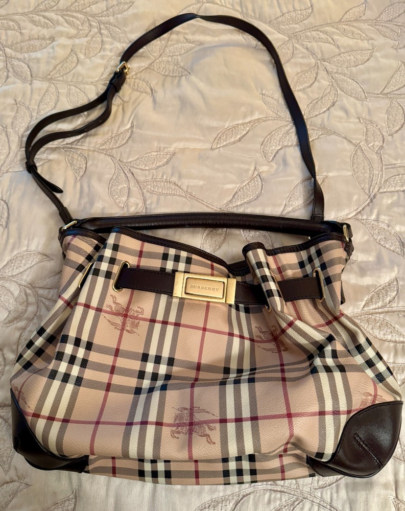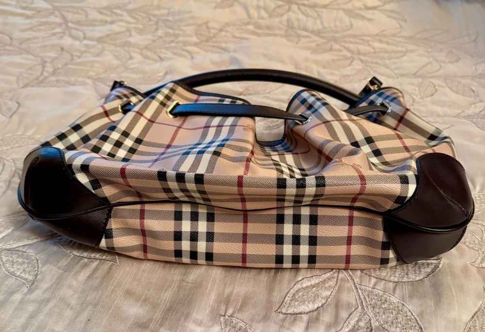 This Authentic Burberry purse is in Excellent condition and has always been stored in the Original Dust Cover. No original box. My mother is the original owner. Approximate Dimensions are 15" x 10" Free Shipping