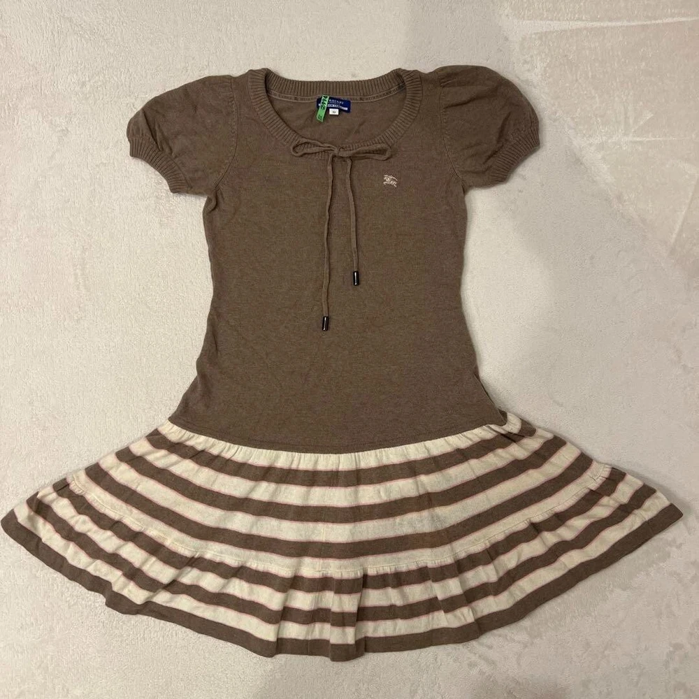 BURBERRY Knit Dress Short Sleeve Flare Skirt Border Brown Women Size 38 Used