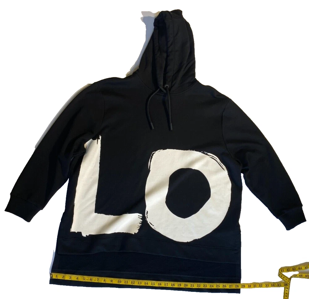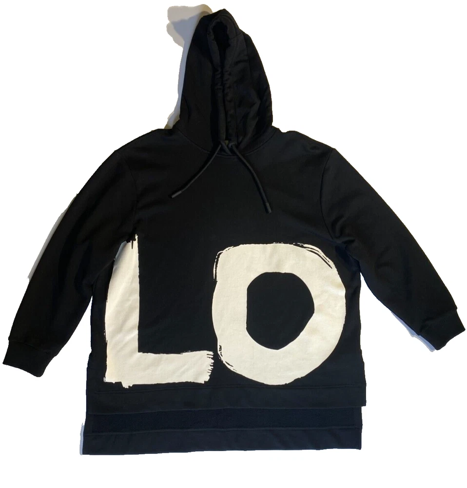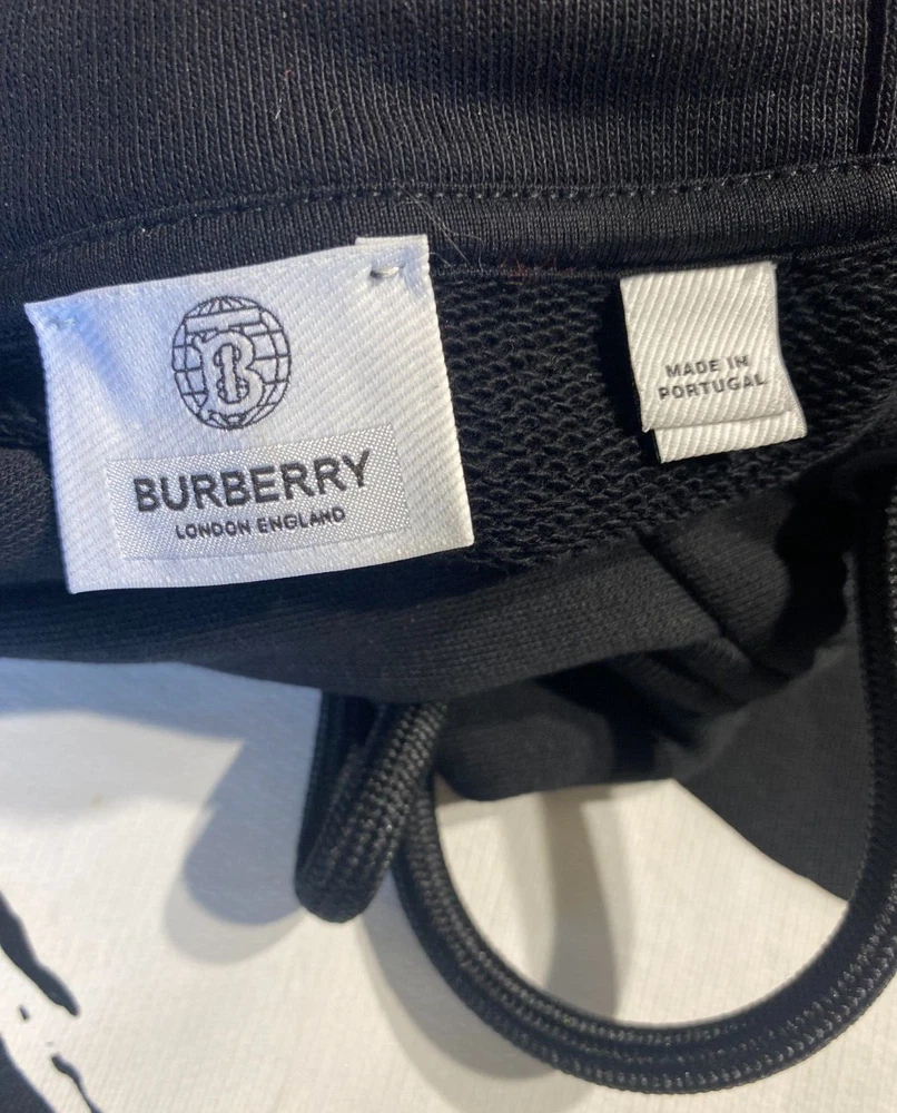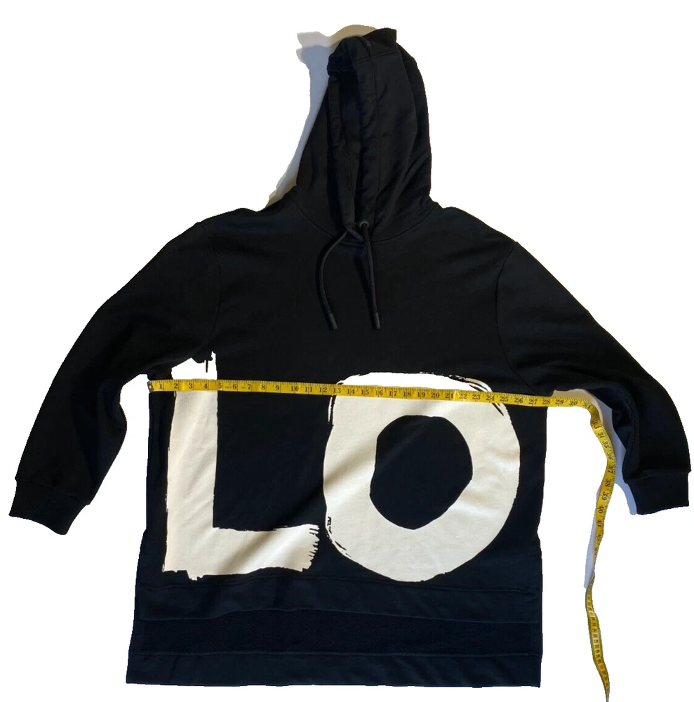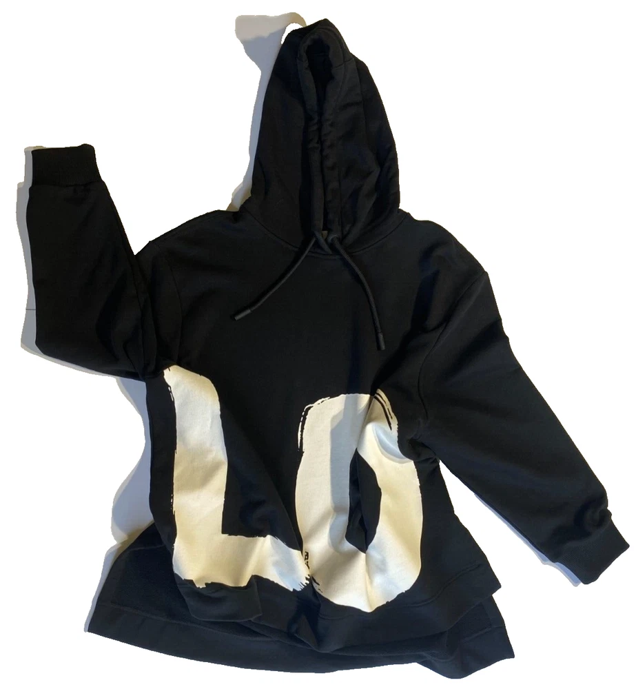 This Burberry London Aurore hoodie in black is the perfect addition to any activewear collection. The oversized fit and drawstring closure make it both comfortable and stylish. The hoodie features a plain design with the words "LOVE" accented in a bold font. Made from 98% cotton and 2% elastane, this hoodie is perfect for winter, fall, and spring seasons. It is a fashion piece that is more comfortable than a sweatshirt. The size is small petite, making it a great fit for women who prefer a regular size. This hoodie is part of the Burberry product line and is manufactured in Portugal.