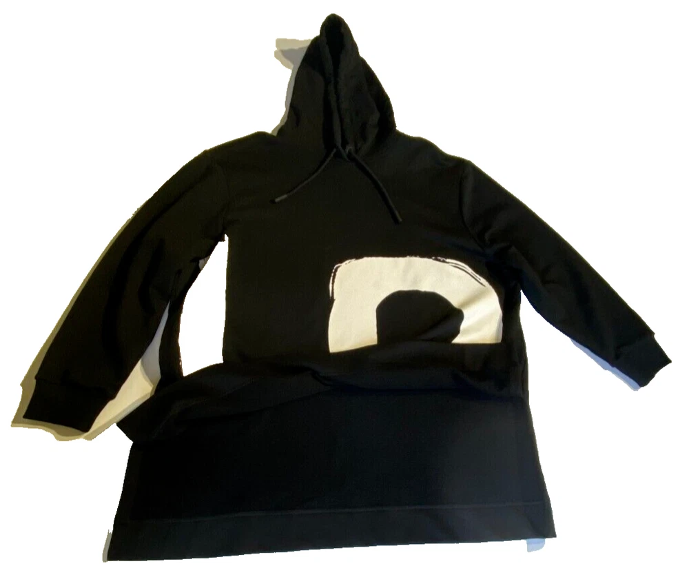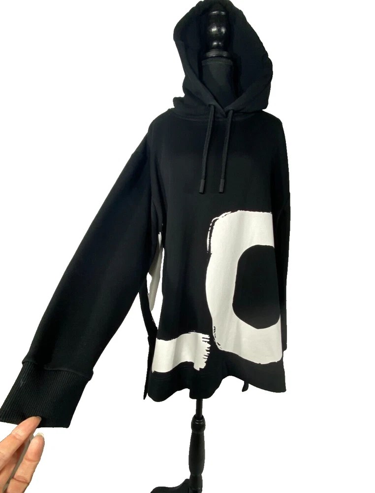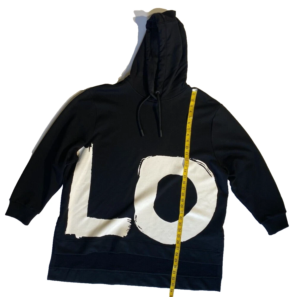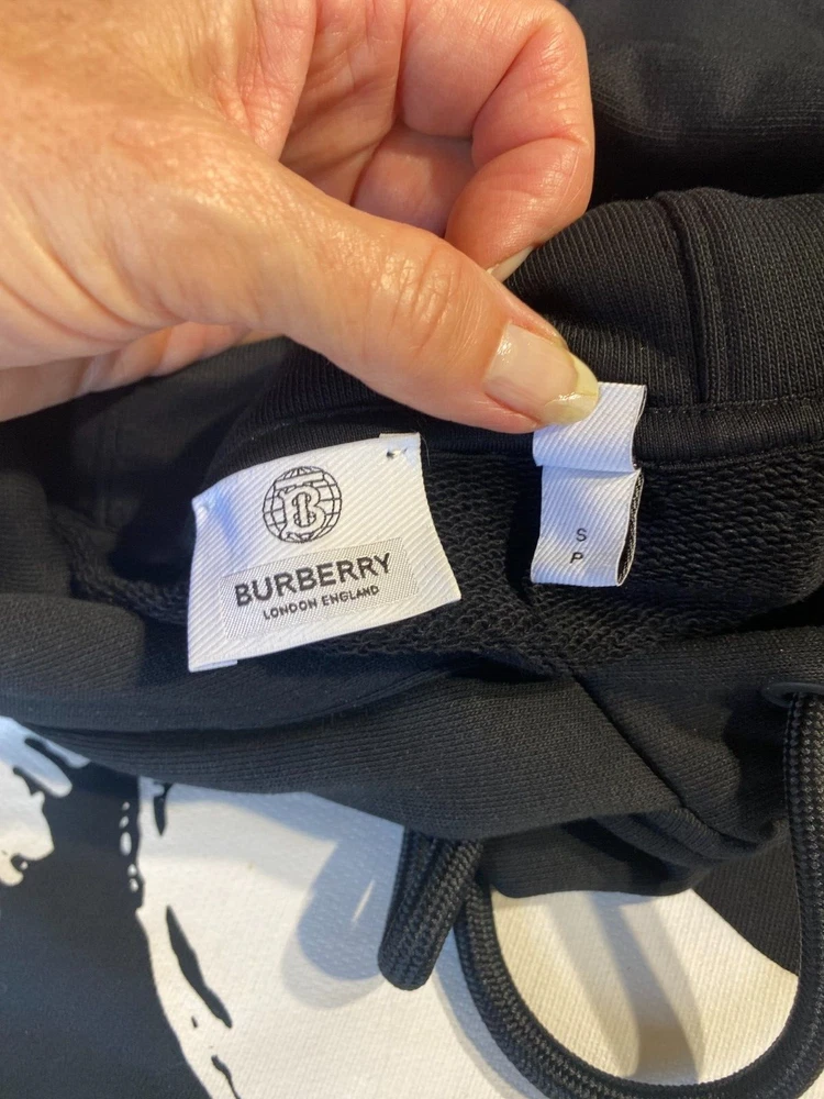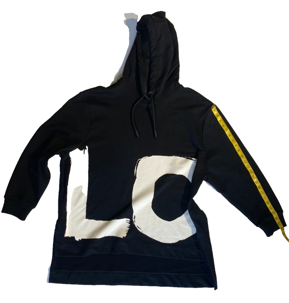This Burberry London Aurore hoodie in black is the perfect addition to any activewear collection. The oversized fit and drawstring closure make it both comfortable and stylish. The hoodie features a plain design with the words "LOVE" accented in a bold font. Made from 98% cotton and 2% elastane, this hoodie is perfect for winter, fall, and spring seasons. It is a fashion piece that is more comfortable than a sweatshirt. The size is small petite, making it a great fit for women who prefer a regular size. This hoodie is part of the Burberry product line and is manufactured in Portugal.