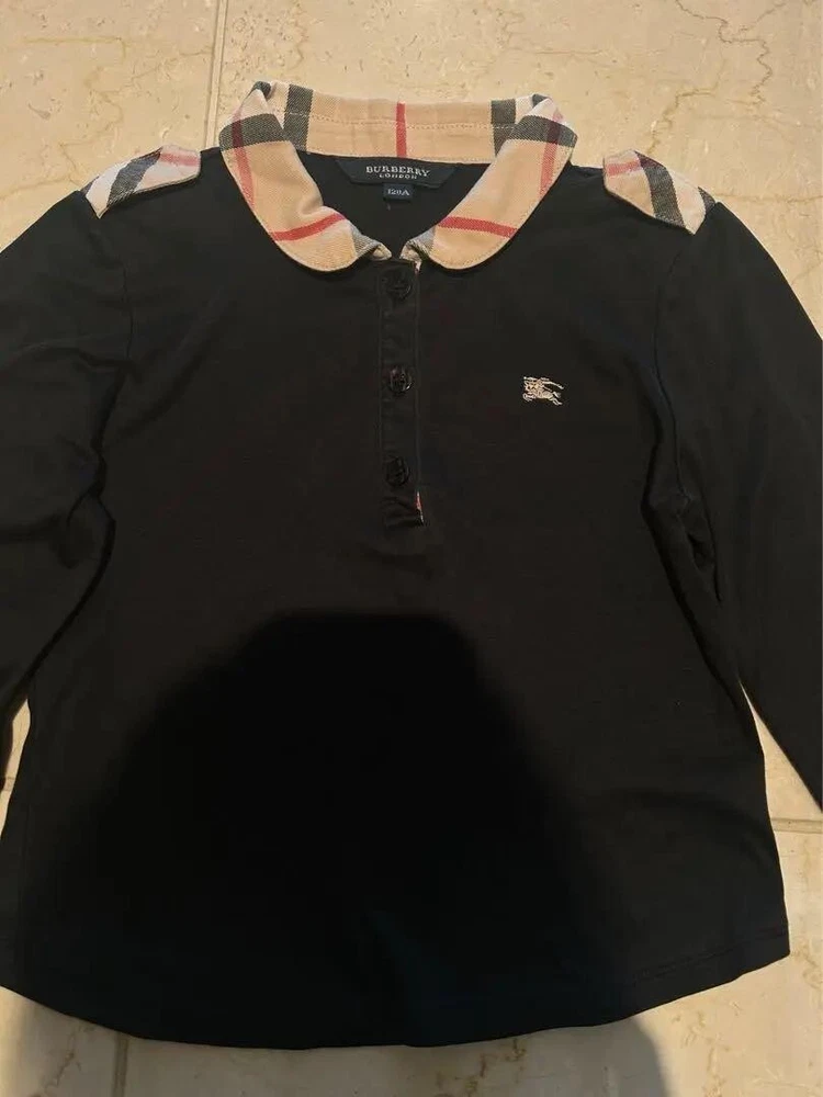 Theme: NA Type: T-Shirt Color: Black Size: 120A Vintage: No MPN: NA Material: Cotton Character: NA Features: NA Fit: Slim UPC: Does not apply Performance/Activity: Walking Season: Fall, Spring, Winter Pattern: Check Occasion: Business, Casual, Travel Department: Unisex Kids Style: Pullover gtin13: Does not apply Garment Care: NA Fabric Type: NA Personalize: No Brand: Burberry Neckline: Collared Sleeve Length: Long Sleeve Fabric Wash: NA Closure: Button Character Family: NA