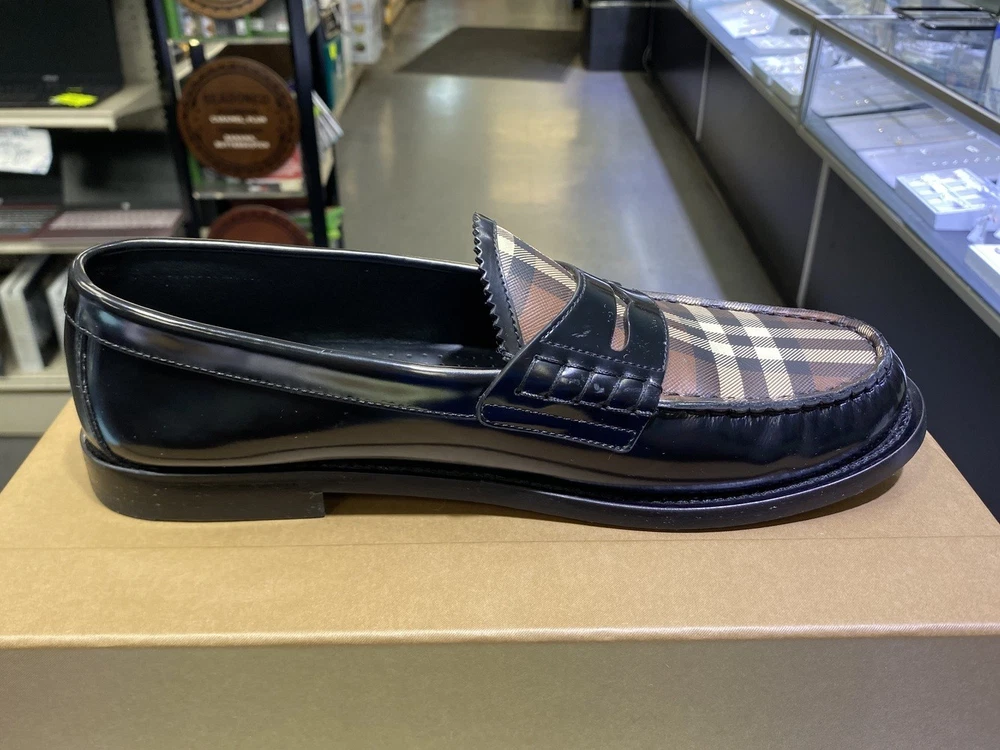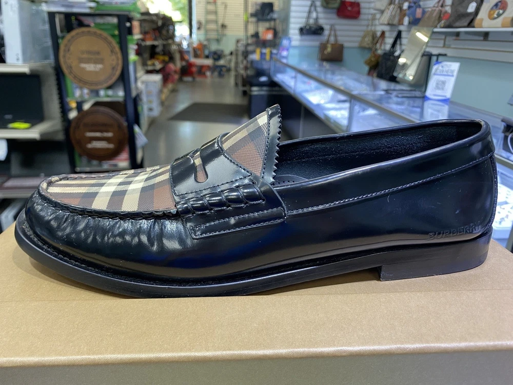 BURBERRY Men's Black Penny Strap Moc-Plaid Upper Shane Loafers Shoes 41, US SIZE 8 These shoes are in great condition. They have been worn. There are a few marks in the leather. SEE PICTURES. Comes in the original box with dust bag.