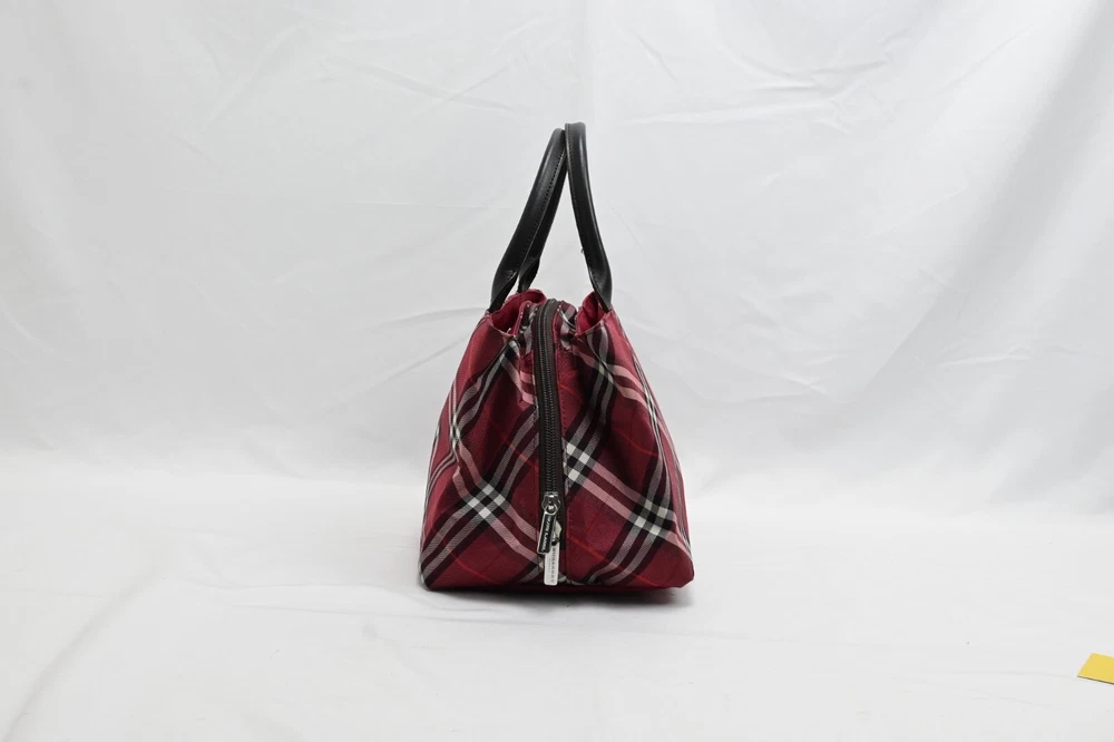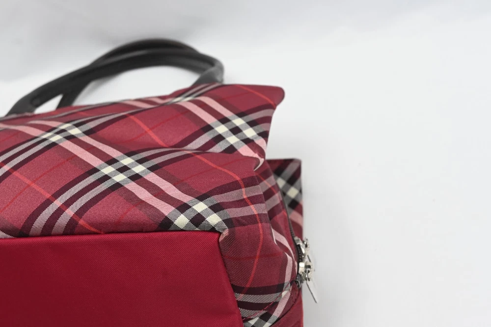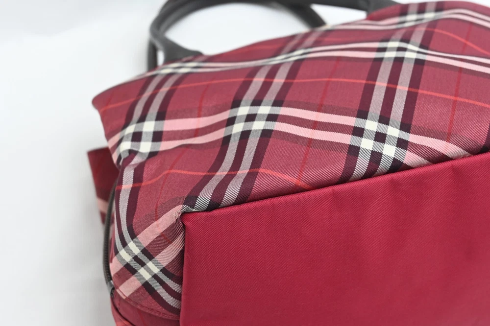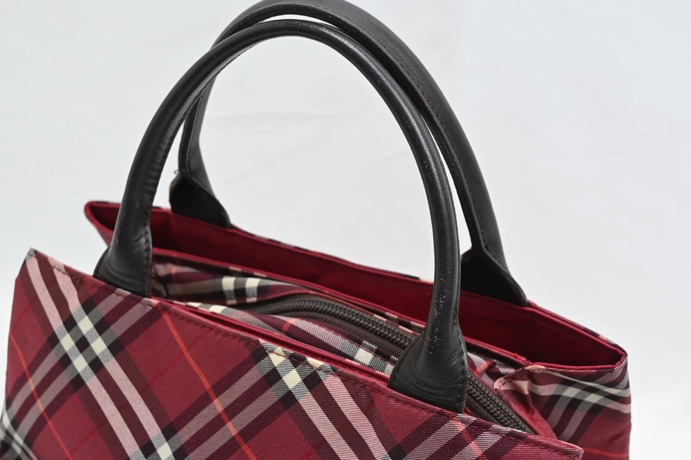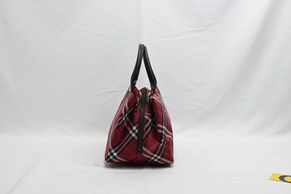 BURBERRY Nova Check Blue Label Hand Bag Nylon Red Authentic
