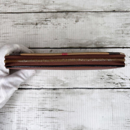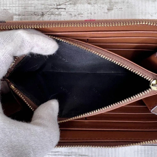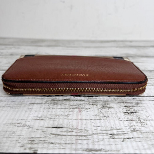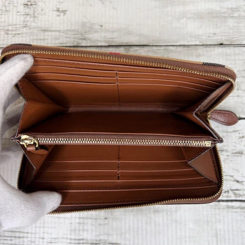 $ 101.39BURBERRY Nova Check Long Zip Wallet in Red Beige with Leather Trim 2804