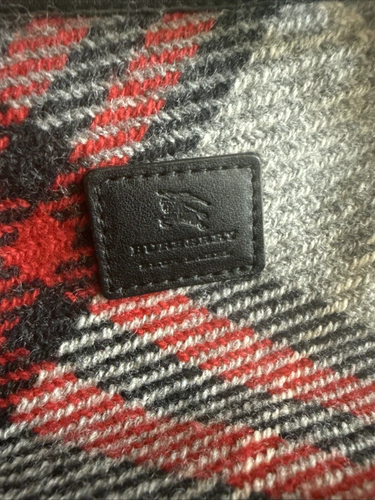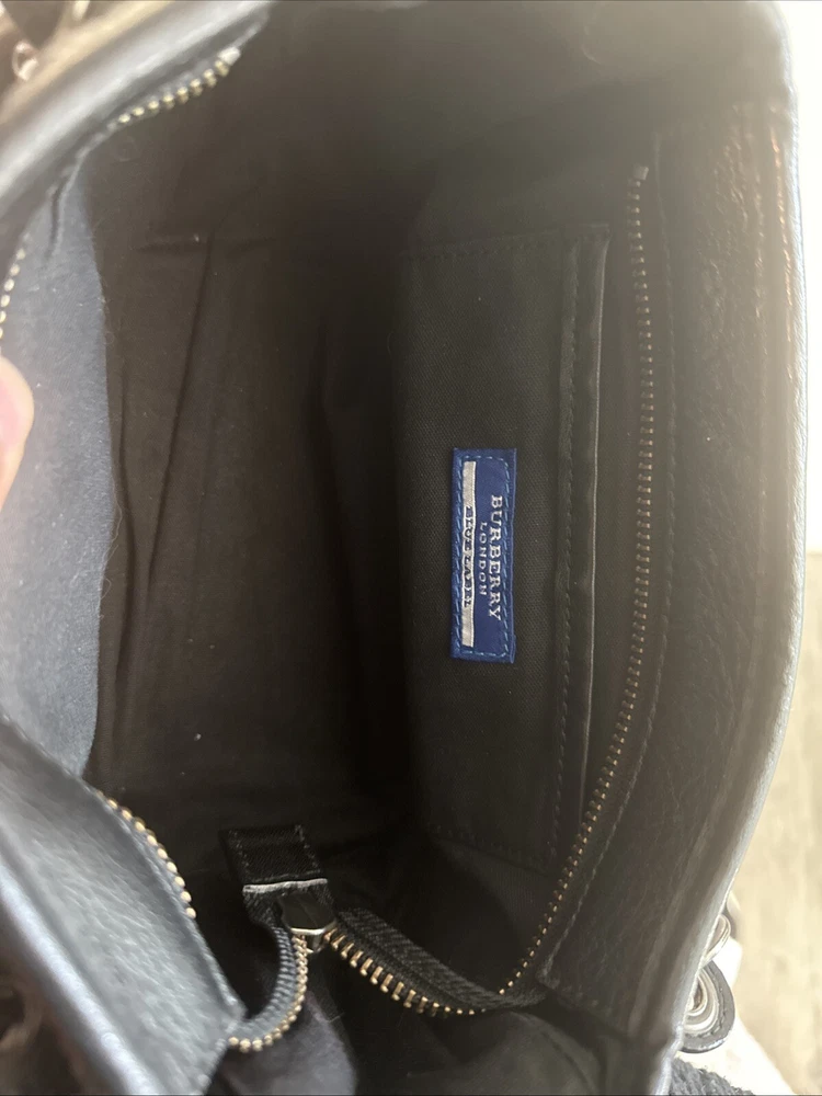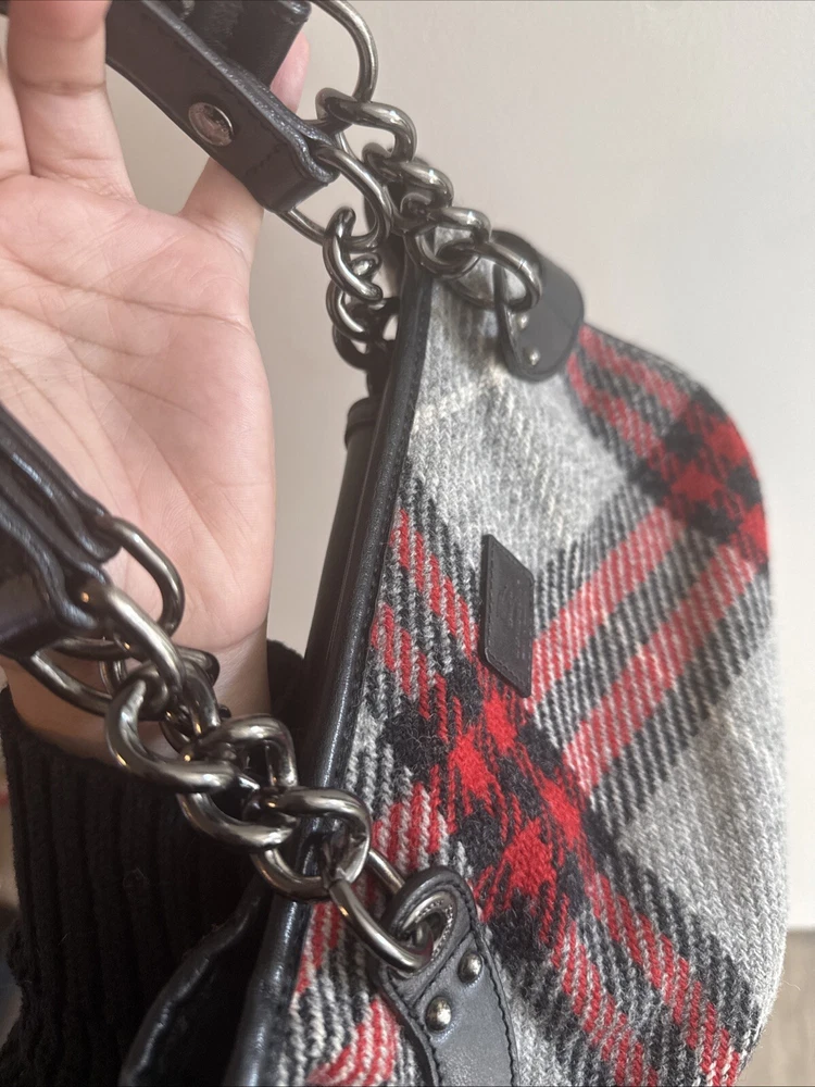BURBERRY Nova Check Chain Blue Label Hand Bag Wool Gray Silver