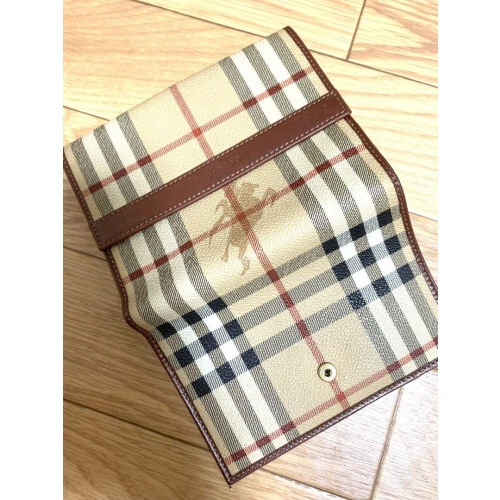 $ 102.6BURBERRY Nova Check Canvas Leather Long Bi-fold Wallet Beige 2813