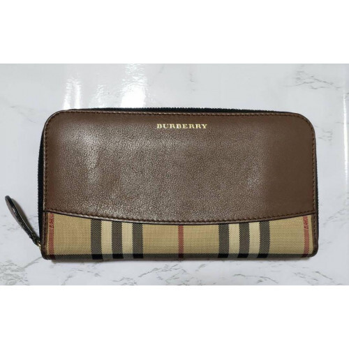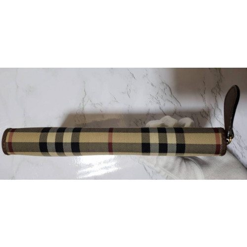 BURBERRY Nova Check Leather Long Zip Wallet Beige 2823