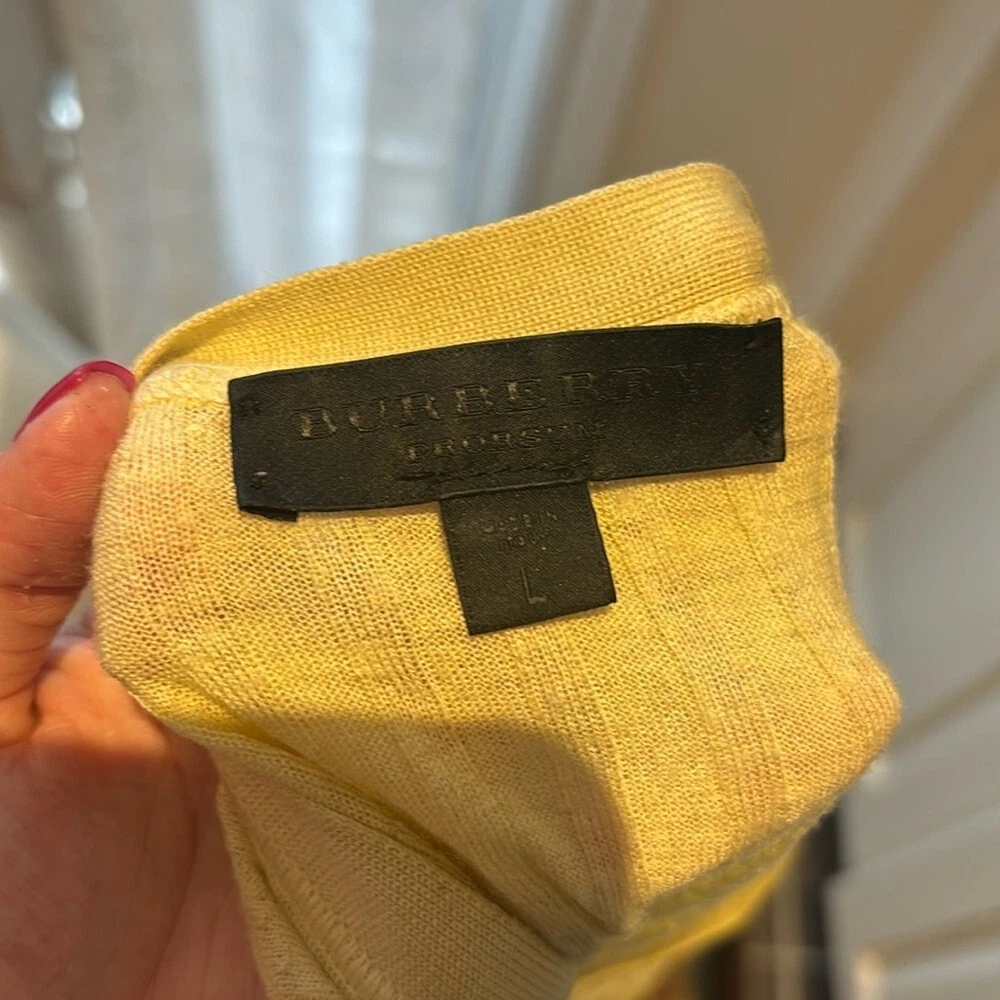 Type: Sweater Style: Cardigan Color: Yellow Brand: Burberry Department: Women Size Type: Regular Material: Wool Size: L