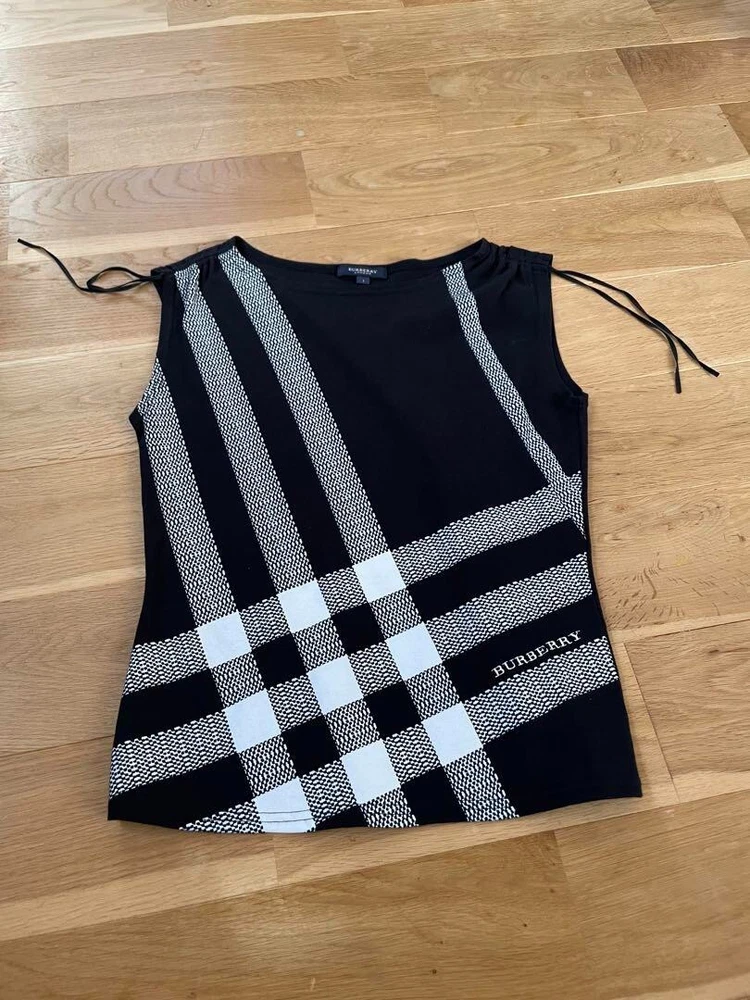 Type: T-Shirt Size Type: Regular Size: 1 Department: Women Pattern: Check Vintage: No Character: NA Fabric Type: NA Material: 100% Cotton gtin13: Does not apply Sleeve Length: Sleeveless UPC: Does not apply Brand: Burberry Style: Basic Neckline: Crew Neck Theme: NA Occasion: Business, Casual, Travel Personalize: No Season: Fall, Spring, Summer Sleeve Type: NA Features: NA Handmade: No Garment Care: NA Closure: Pullover MPN: NA Color: Multicolor Fit: Slim Strap Type: NA
