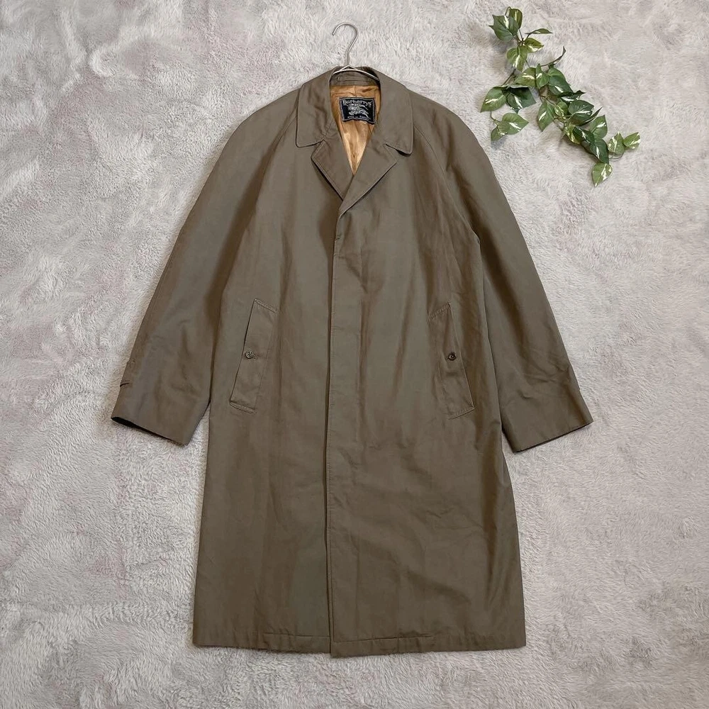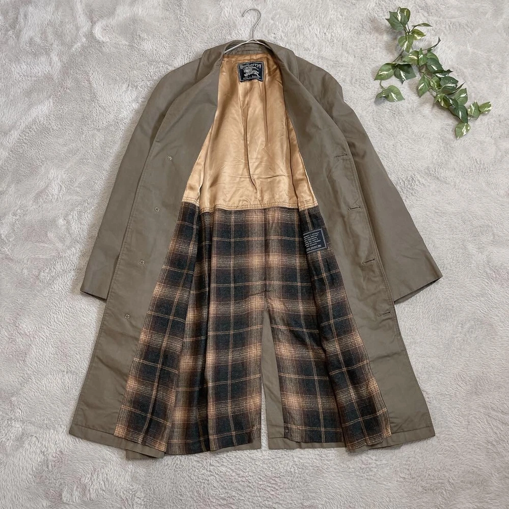 BURBERRY Soutien collar Coat Long Coat Khaki Check Vintage Men Size Free Used