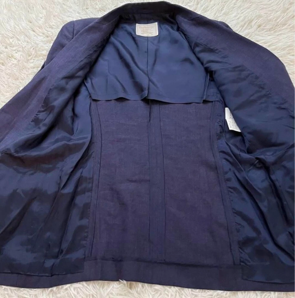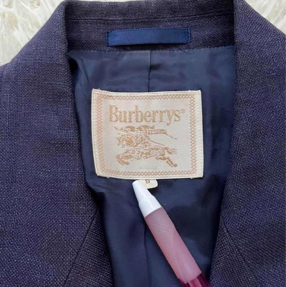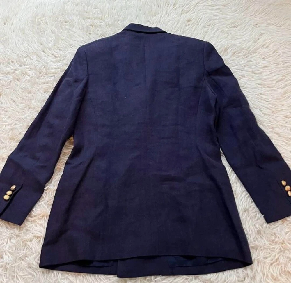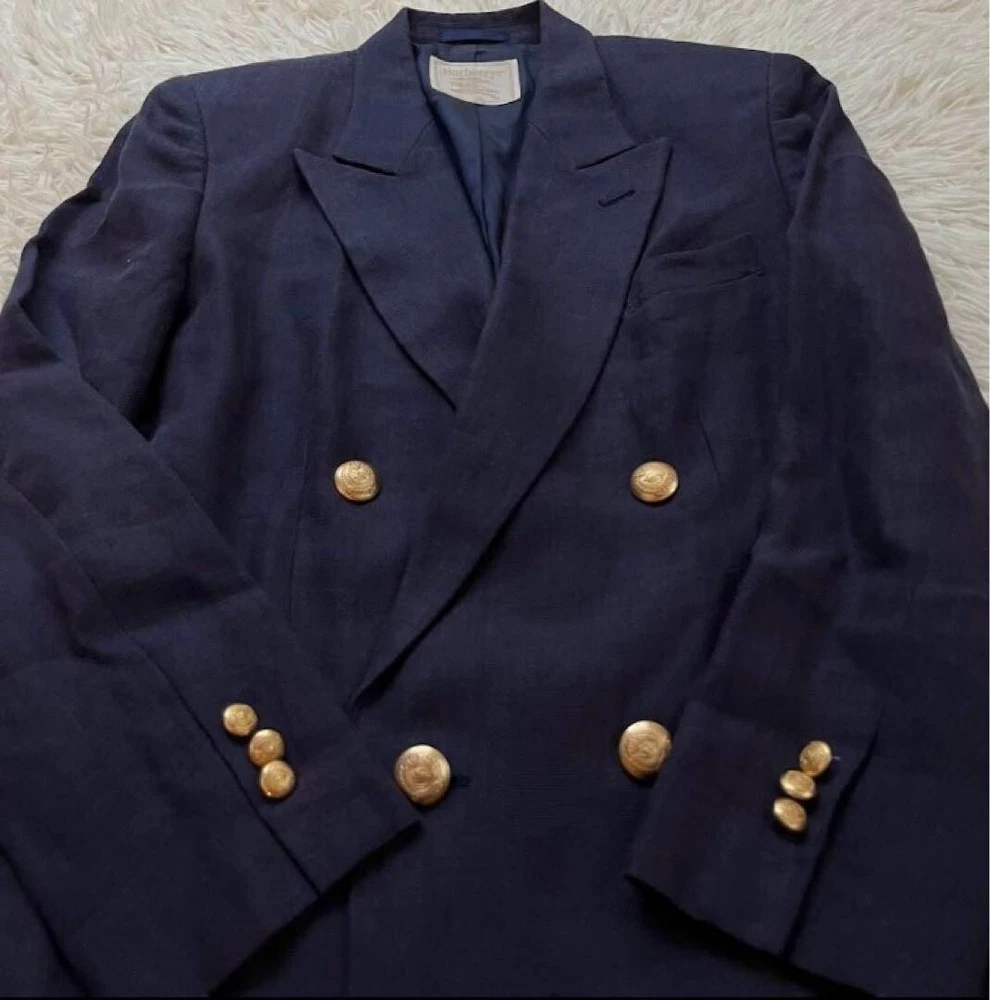 BURBERRYS Tailored Double Jacket Navy 100% Linen Button Men Size 9 Used