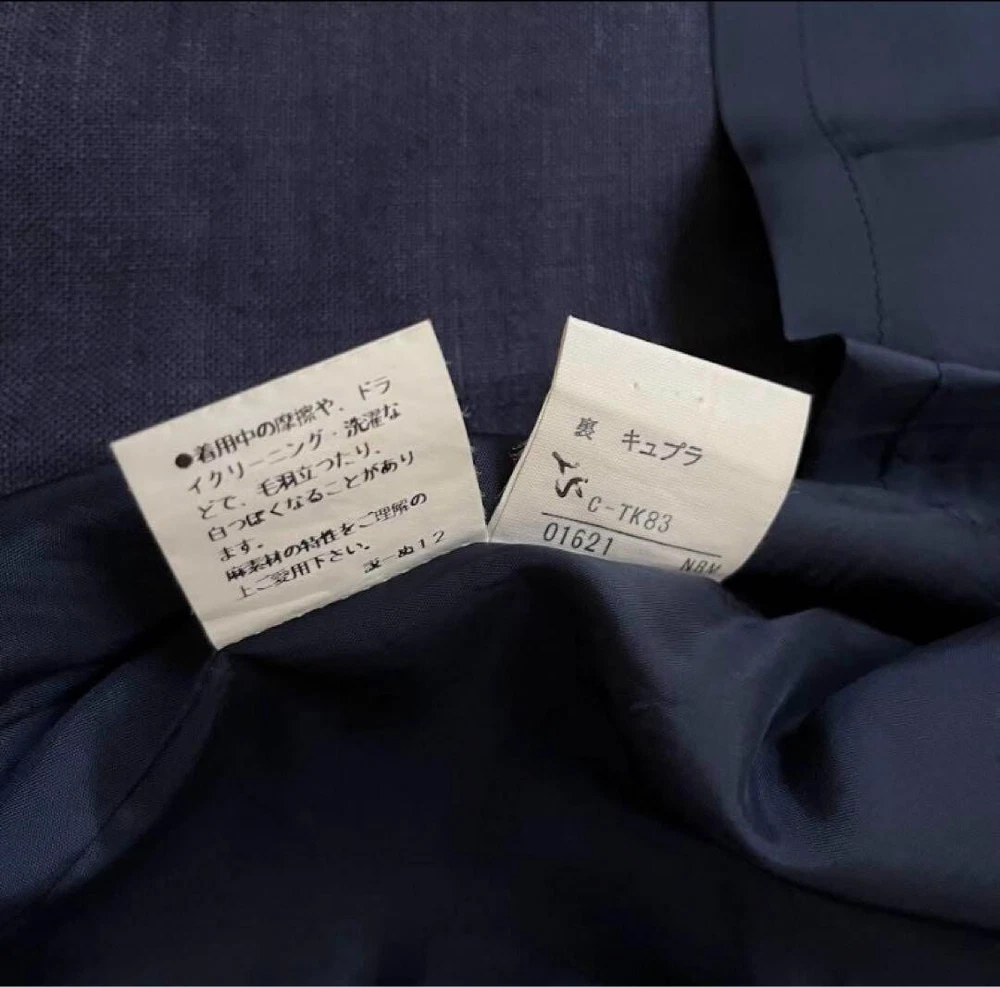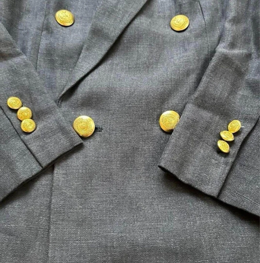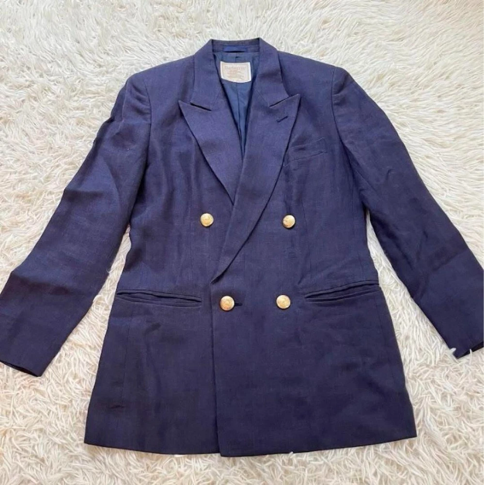 BURBERRYS Tailored Double Jacket Navy 100% Linen Button Men Size 9 Used
