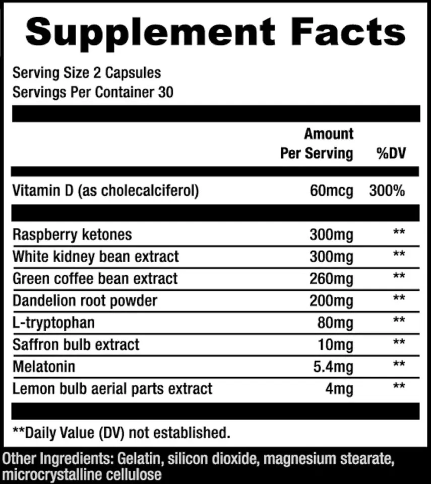 Features: All Natural MPN: Does not apply Main Purpose: Weight Loss UPC: Does not apply Number of Pills: 60 Supply: 1 Month and Longer Country/Region of Manufacture: India Dosage: 2 capsules daily gtin13: Does not apply Ingredients: All Natural Expiration Date: Long Expiry Date Active Ingredients: All Natural Type: Burn PM Formulation: Capsule Brand: SculptNation Department: Unisex Type of Diet: Ayurvedic When to Take: After Meal