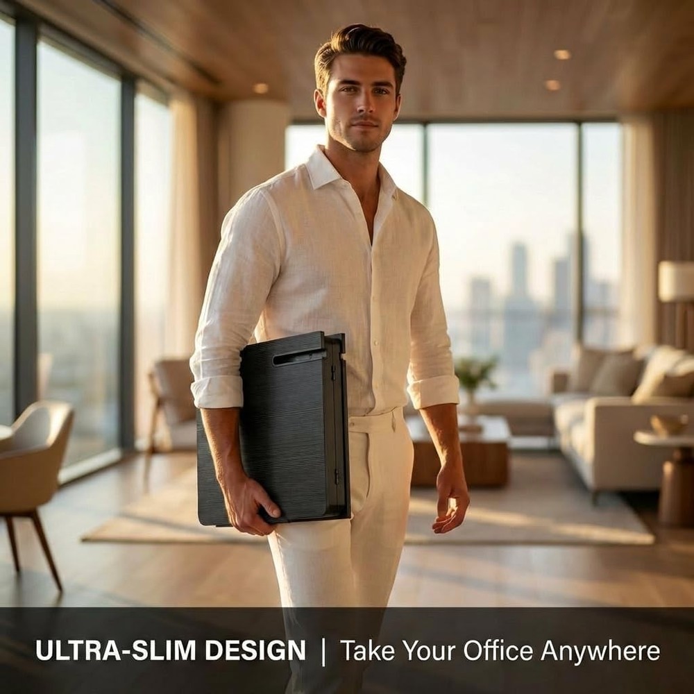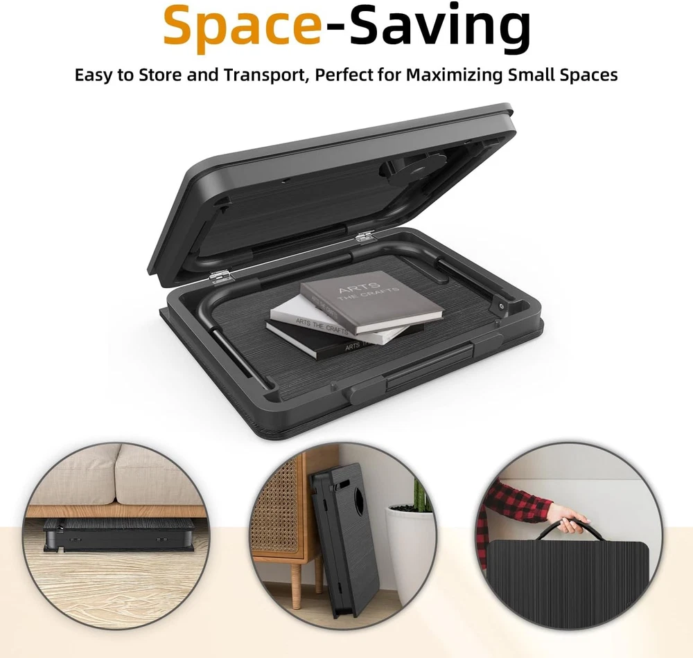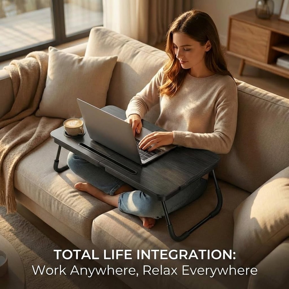 Free eBay listing template designed by dewiso.com BUYIFY Foldable Laptop Bed Desk for Couch, Sofa - Large Lap Desk Tray Table with Cup Holder and Tablet Slot - Portable Notebook Stand for Eating, Writing, Studying and WFH (Black)- USA Original Patent FREE AND FAST SHIPPING! About this item PRE-ASSEMBLED and COLLAPSIBLE: Zero installation needed—unfold and go. Engineered for compact living, this lap table folds flat instantly, offering a hideaway storage solution behind doors or under furniture. INTEGRATED DEVICE STAND and DRINK DOCK: Designed with a stable beverage recess to avoid spills and a secure groove to dock your tablet or phone. Enjoy hands-free entertainment or video conferences without devices slipping. MULTI-USE BED DESK: A flexible platform for remote work, studying, or dining in bed. Ideal for users with limited mobility or those requiring bed rest. GENEROUS TABLETOP DIMENSIONS: The extra-wide surface easily holds 17" laptops with room to spare for a mouse and snacks. The ergonomic curved front ensures body comfort while sitting cross-legged on the floor or sofa. COMPACT and TRAVEL-FRIENDLY: Supported by non-slip legs for stability on soft surfaces like carpets. Its lightweight build makes it easy to transport indoors or outdoors for reading, sketching, or leisure activities. Product We offer a 30-Day Return Policy on items which you are not completely satisfied with. You have the option for a full-refund or an exchange of the item. No returns are available on items shipped outside of the US . Shipping We offer Free Shipping to the US and ship within 2 business days of payment, usually sooner. We use UPS express shipping. That's why your products are usually delivered within 3 days . Contact We try our very best to make sure every customer is completely satisfied. If there's a problem , message us! We're happy to help. 24/7 live chat available.