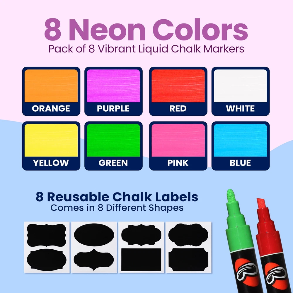 BUYZIA Liquid Chalk Markers - 8 Pack Neon Colors - 6mm Chalk Pens with Revers...