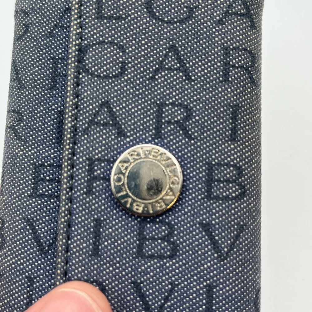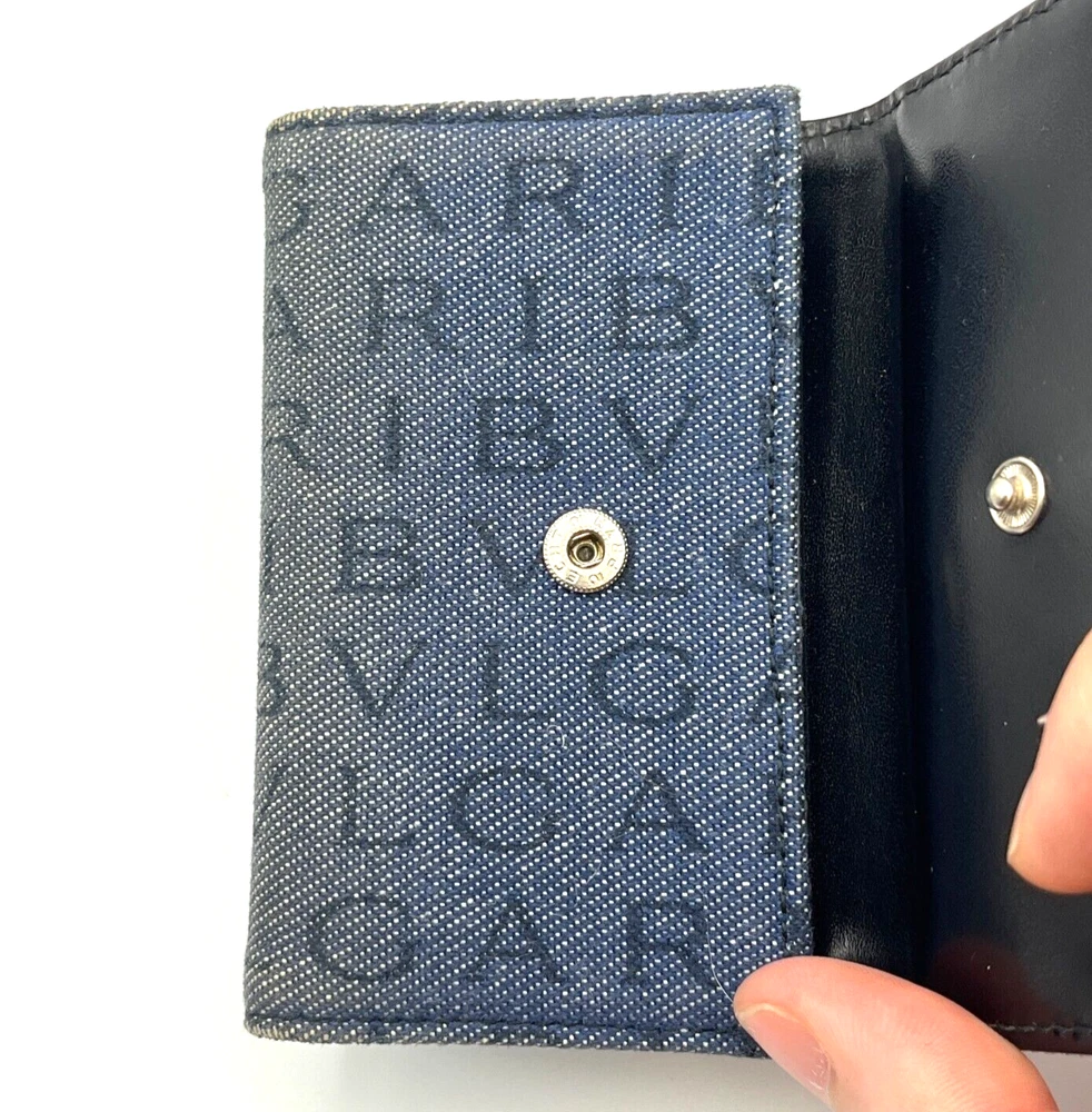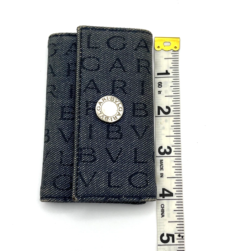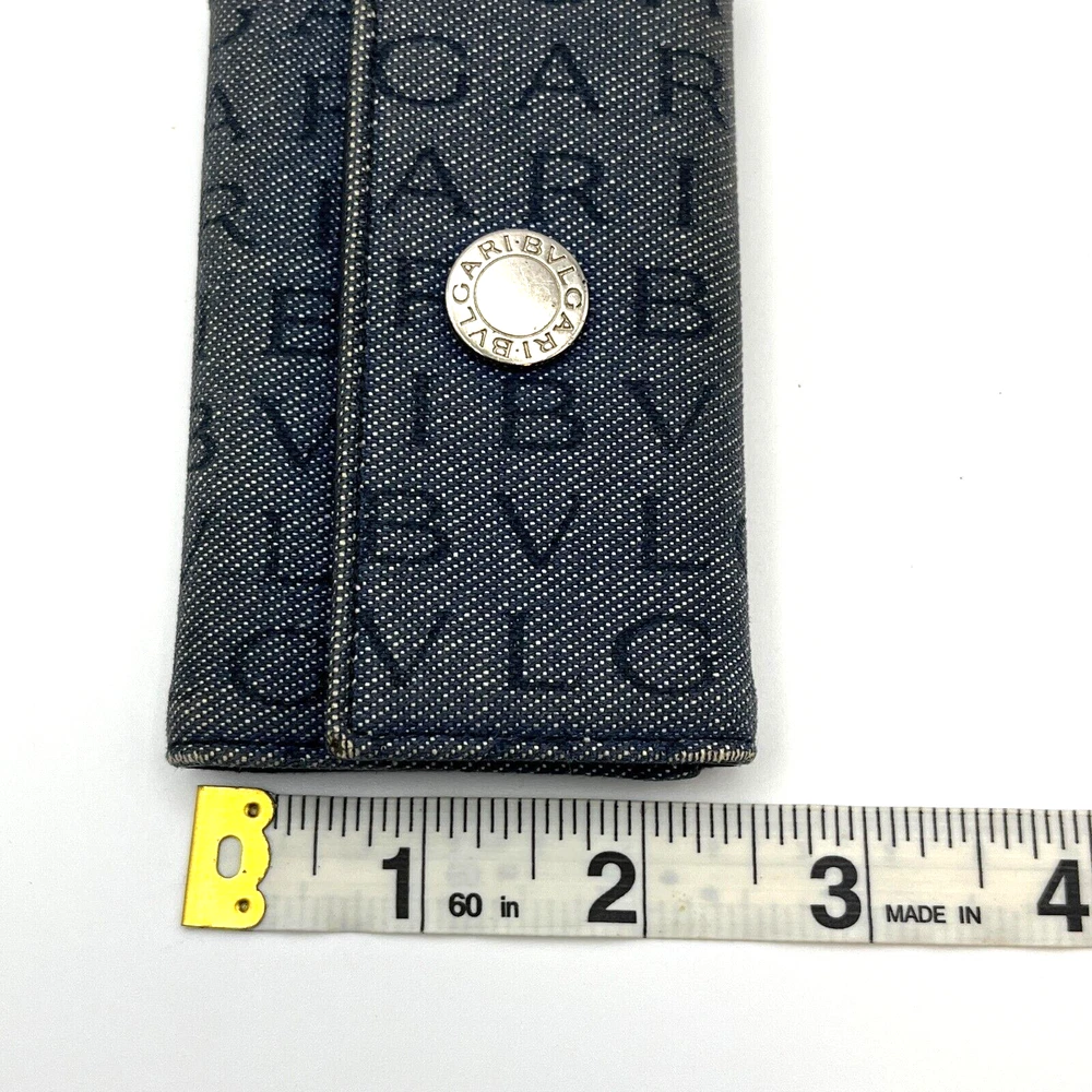 BVLGARI Key Holder Denim Logo Black Interior w One Pocket Two Key Hooks Designer Measurements : 4" x 2.5" - See reference photos Condition: The key holder is a denim canvas on the outside and black leather on the inside. There is one inside pocket that is a good size for a drivers license or credit card. There are two hooks inside. The snap is working great. When you pull the flap up you can see the color of the original denim and it highlights how faded the exterior denim is. The edges are especially faded and show obvious signs of usage. The corners are not broken or torn, but are worn. Inside the leather has some creases also showing heavy usage. You can get replacement hooks if needed. The interior gold hardware has color loss. Please review all photos. Please follow my store on eBay to receive coupons and sale information. I sell mostly vintage and designer women’s bags, clothes & accessories. Payment Payment will be handled through eBay. Most items will allow you to pay after committing to the sale. This gives us the ability to send an invoice for orders with multiple items with the shipping amount adjusted before payment. Please allow up to 24 hours to receive your invoice. If payment is not received within 3 days your order may be in jeopardy of being cancelled. Shipping We only ship to your eBay confirmed address. We cannot change the address after the sale is made. No exceptions. If this happens to you, you must cancel the order, fix your shipping address and purchase the item again. I will ship within 1 business day of cleared payment received. Combined Shipping is available when purchasing multiple items. The shipping will be recalculated based on the new weight and box size, and an invoice for the items with the adjusted shipping will be sent to you for payment within 24 hours. If you pay for multiple items in advance, just send us a message and we will do the calculations and refund you the difference in the combined shipping. International Buyers - Please Note: All of my international shipping is handled through eBay international shipping program. If you have questions about this, please contact eBay. Likewise, international returns are handled completely and solely through the eBay program, so questions will go directly to them. Terms of Sale All are items are guaranteed as described or your money back! We offer a 30-day return policy. About Us Stone Blue Creative jewelry & collectibles business is 3 years old. We carry designer, vintage, and estate jewelry along with other fine women’s accessories and art. We work hard to provide accurate representations of all of our jewelry and guarantee each item. We sell in all price ranges from $5 to around $3,000. All of our pieces are second hand unless marked New. Contact Us We can be reached through eBay messaging. Please allow up to 24 hours for a response, although response times are usually much faster.