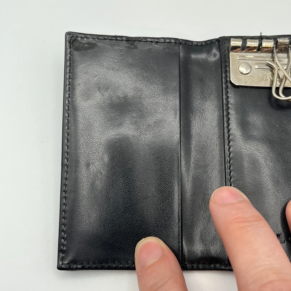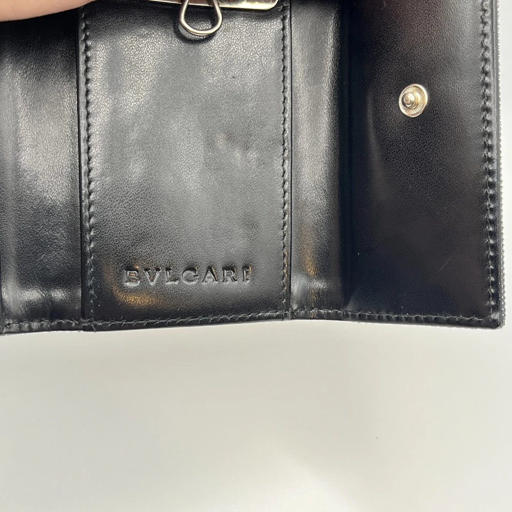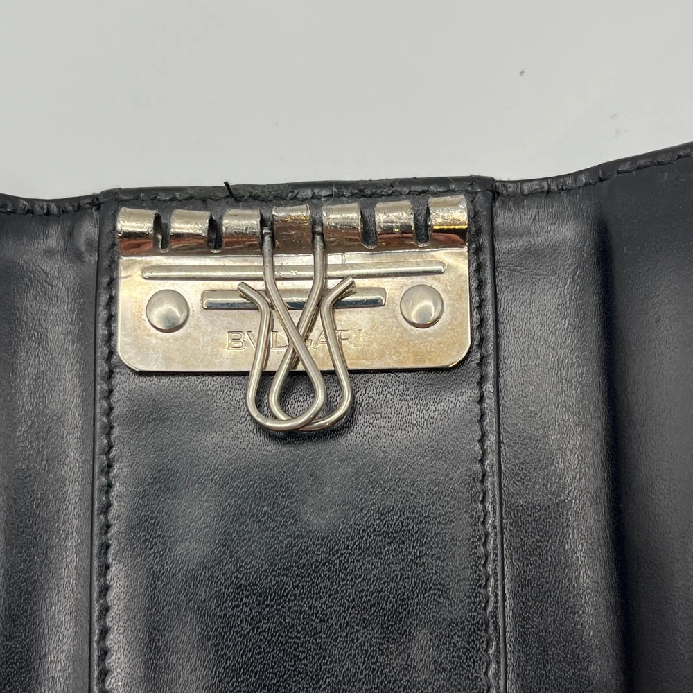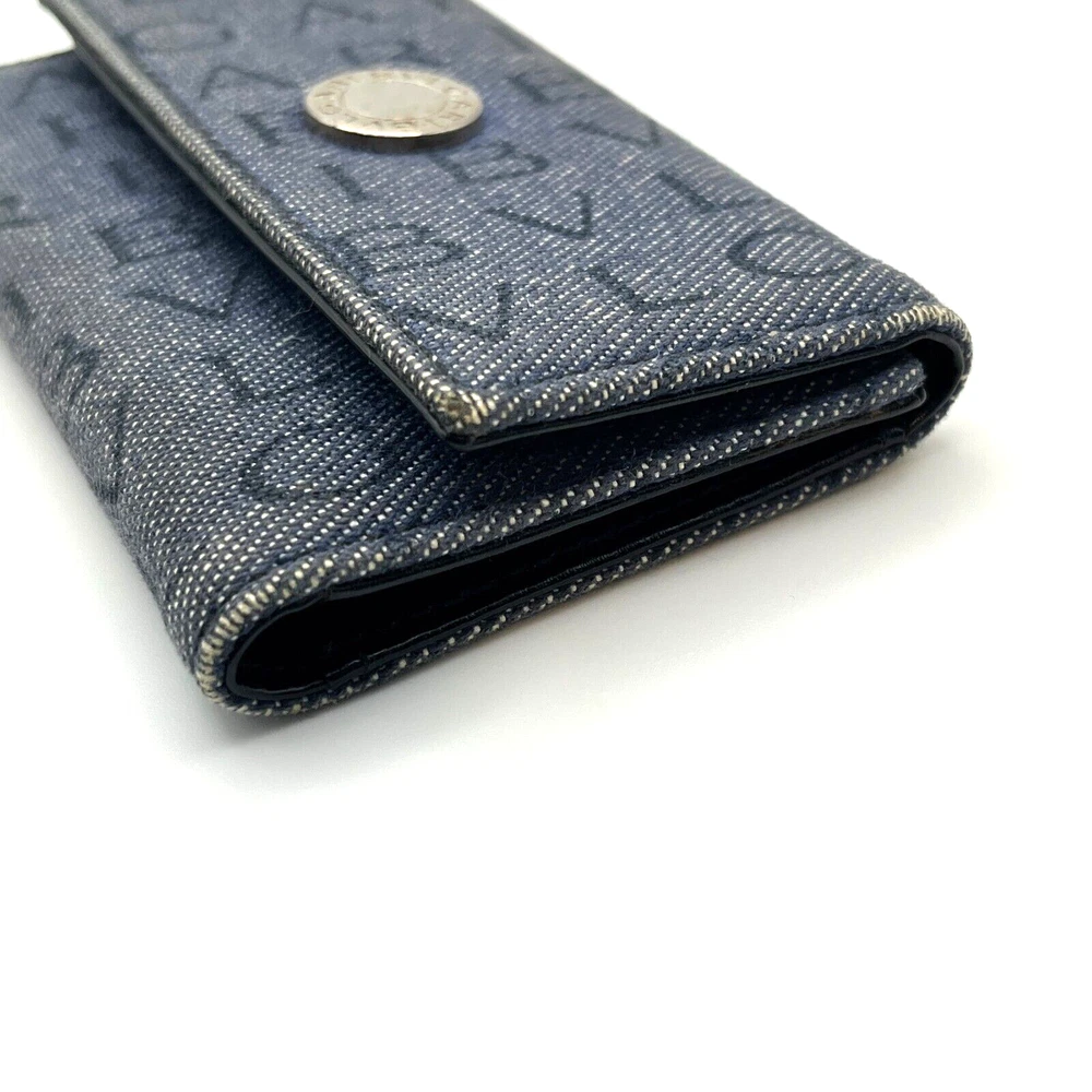 BVLGARI Key Holder Denim Logo Black Interior w One Pocket Two Key Hooks Designer Measurements : 4" x 2.5" - See reference photos Condition: The key holder is a denim canvas on the outside and black leather on the inside. There is one inside pocket that is a good size for a drivers license or credit card. There are two hooks inside. The snap is working great. When you pull the flap up you can see the color of the original denim and it highlights how faded the exterior denim is. The edges are especially faded and show obvious signs of usage. The corners are not broken or torn, but are worn. Inside the leather has some creases also showing heavy usage. You can get replacement hooks if needed. The interior gold hardware has color loss. Please review all photos. Please follow my store on eBay to receive coupons and sale information. I sell mostly vintage and designer women’s bags, clothes & accessories. Payment Payment will be handled through eBay. Most items will allow you to pay after committing to the sale. This gives us the ability to send an invoice for orders with multiple items with the shipping amount adjusted before payment. Please allow up to 24 hours to receive your invoice. If payment is not received within 3 days your order may be in jeopardy of being cancelled. Shipping We only ship to your eBay confirmed address. We cannot change the address after the sale is made. No exceptions. If this happens to you, you must cancel the order, fix your shipping address and purchase the item again. I will ship within 1 business day of cleared payment received. Combined Shipping is available when purchasing multiple items. The shipping will be recalculated based on the new weight and box size, and an invoice for the items with the adjusted shipping will be sent to you for payment within 24 hours. If you pay for multiple items in advance, just send us a message and we will do the calculations and refund you the difference in the combined shipping. International Buyers - Please Note: All of my international shipping is handled through eBay international shipping program. If you have questions about this, please contact eBay. Likewise, international returns are handled completely and solely through the eBay program, so questions will go directly to them. Terms of Sale All are items are guaranteed as described or your money back! We offer a 30-day return policy. About Us Stone Blue Creative jewelry & collectibles business is 3 years old. We carry designer, vintage, and estate jewelry along with other fine women’s accessories and art. We work hard to provide accurate representations of all of our jewelry and guarantee each item. We sell in all price ranges from $5 to around $3,000. All of our pieces are second hand unless marked New. Contact Us We can be reached through eBay messaging. Please allow up to 24 hours for a response, although response times are usually much faster.
