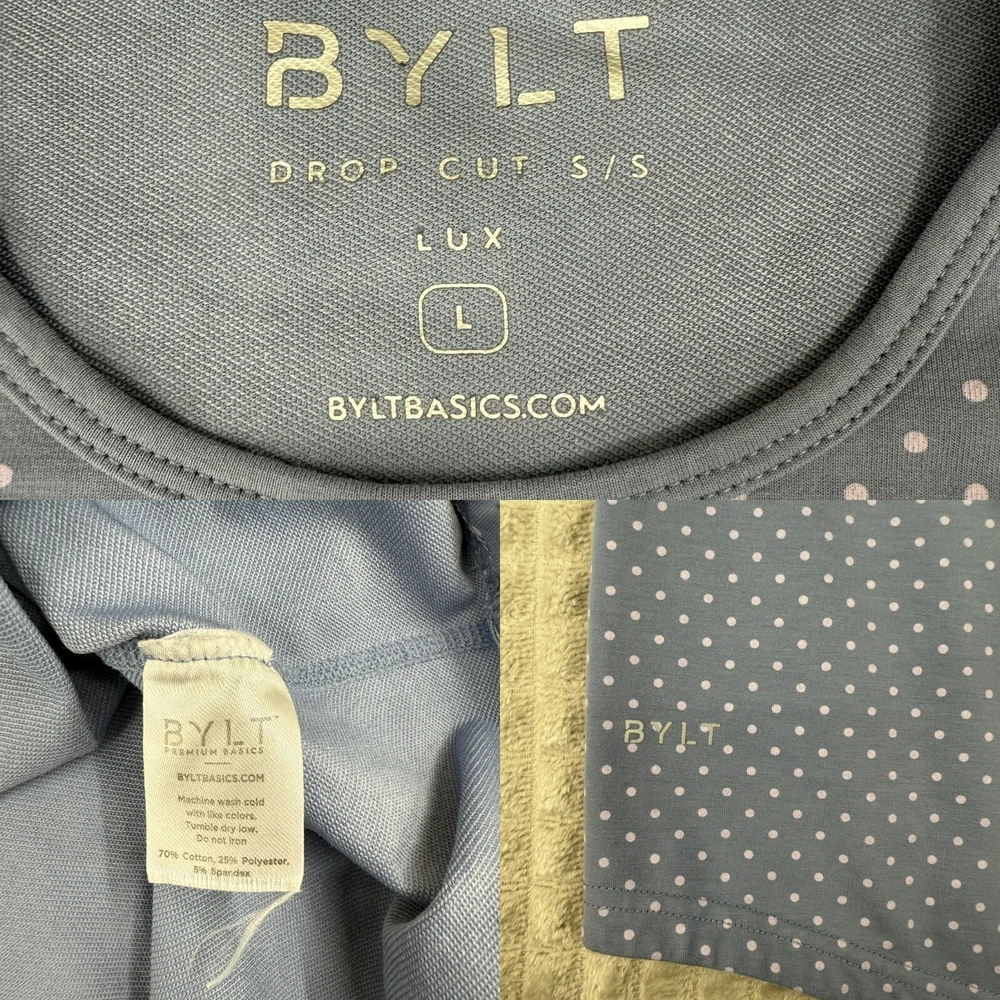 BYLT Shirt Men's Large Blue Drop Cut Lux Performance Stretch Curved Hem Athletic Great condition. No stains, rips, or tears. Material: See Pictures Measurements: See Pictures *We have many similar items in stock. Please check out our store for more. ***Color variation might vary slightly due to camera and lighting*** If you have questions, please message me. I answer INSTANTLY! Fast shipping available. I do most of the shipping within 1 business day! And ship via USPS with a tracking number emailed to you. Thanks for Shopping!