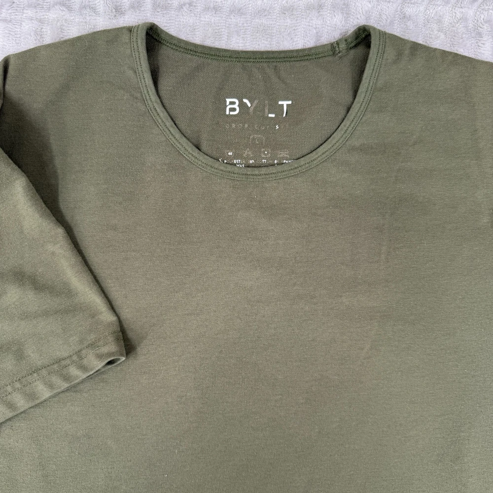 BYLT Shirt Mens Large Green Drop Cut Lux Performance Stretch Curved Hem Athletic Great condition. No stains, rips, or tears. Material: See Pictures Measurements: See Pictures *We have many similar items in stock. Please check out our store for more. ***Color variation might vary slightly due to camera and lighting*** If you have questions, please message me. I answer INSTANTLY! Fast shipping available. I do most of the shipping within 1 business day! And ship via USPS with a tracking number emailed to you. Thanks for Shopping!