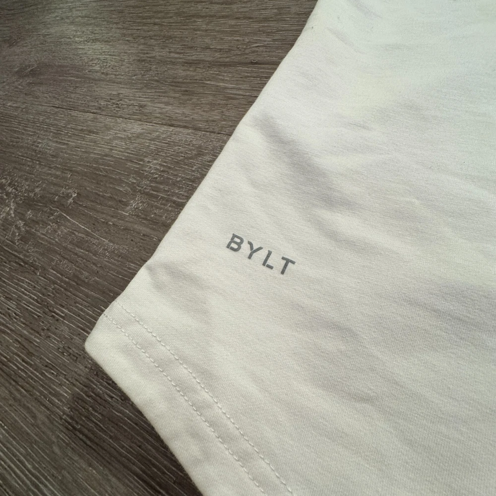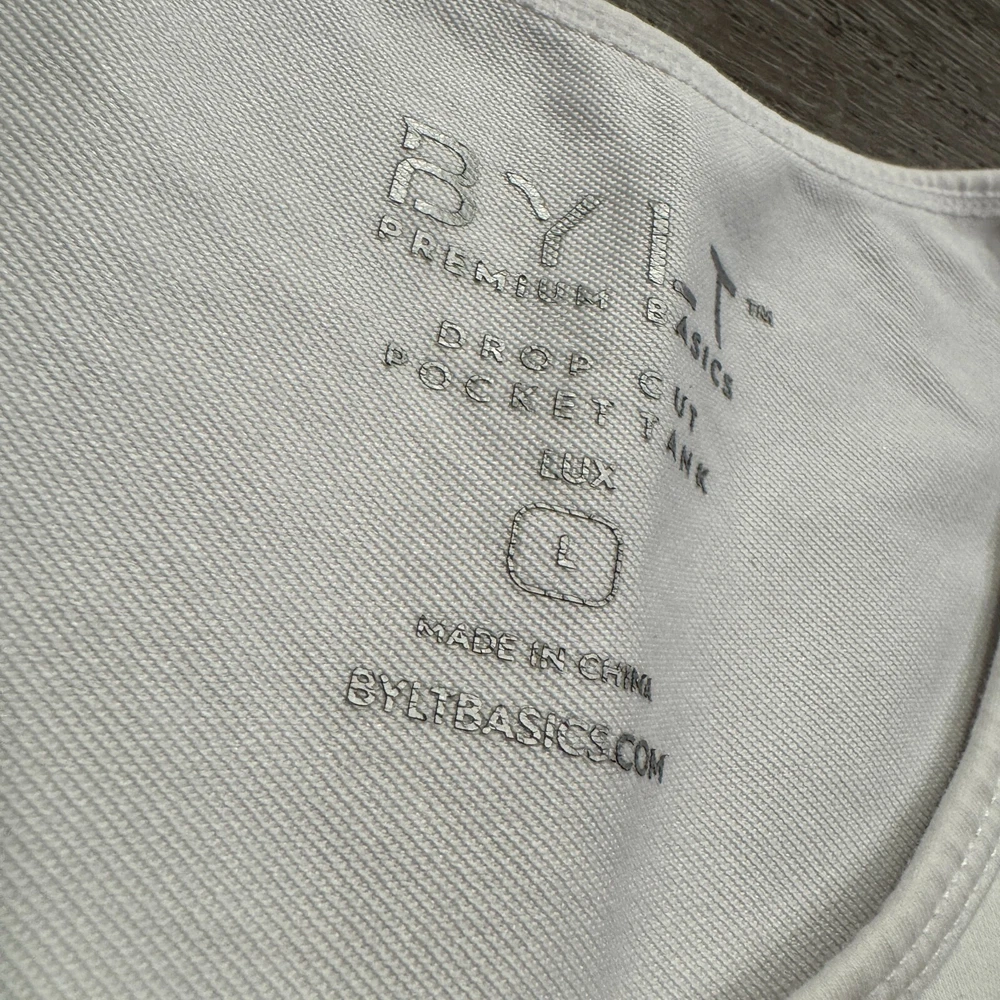 BYLT Shirt Mens Large White Lux Drop Cut Tank Top Pocket Gym Workout Active