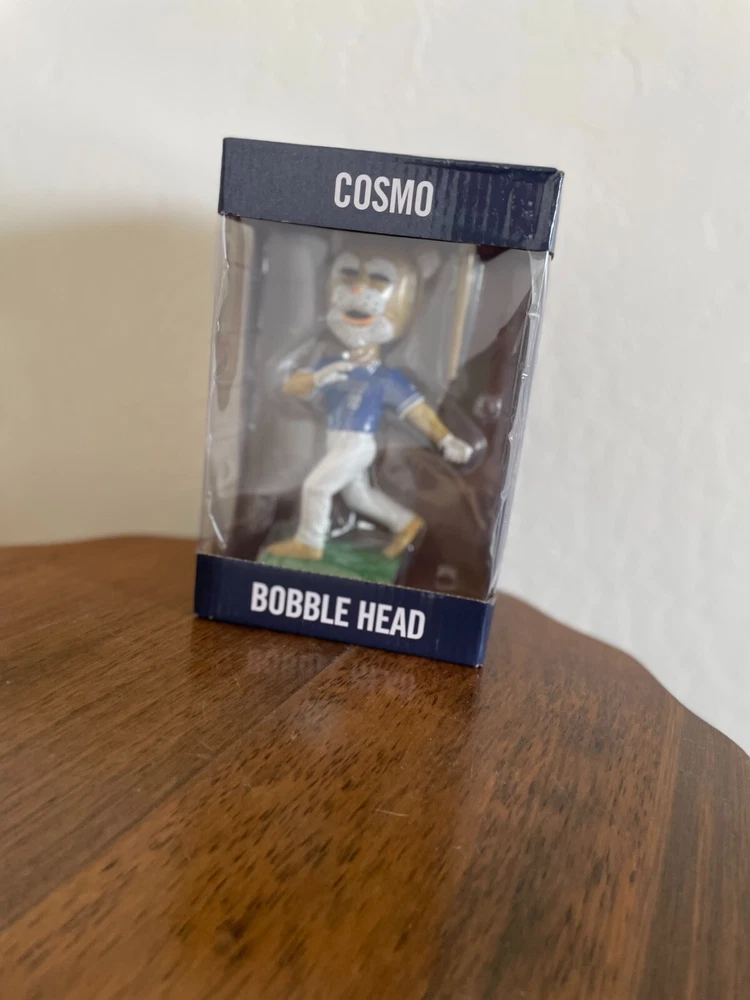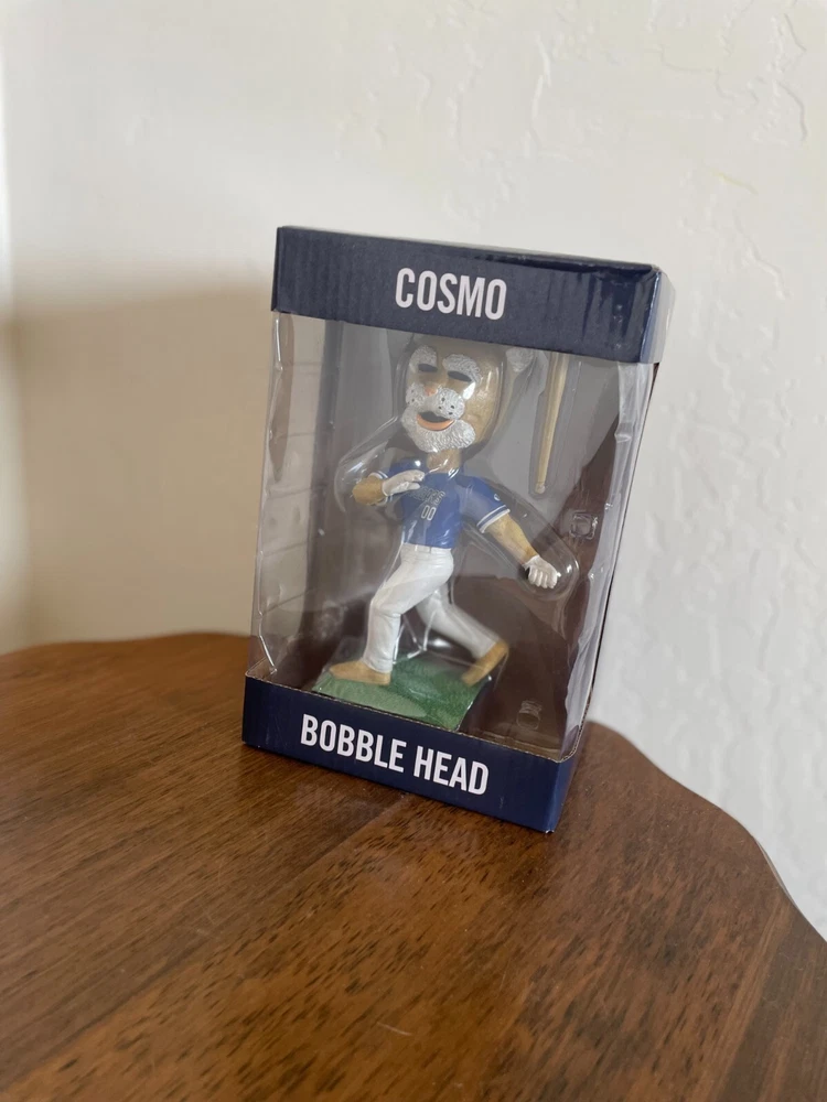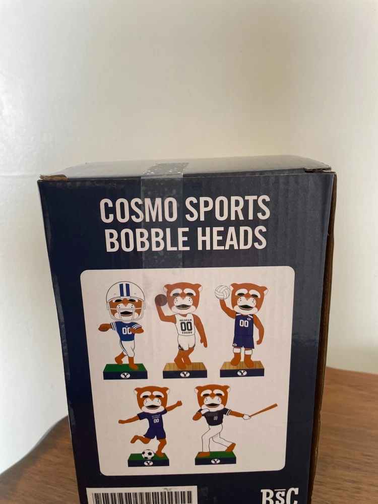 This is a BYU Cougars Cosmo, Bobble Head Mascot, Baseball Batting NEW in the BOX. The box may show a little wear, but Cosmo is new inside. Nonsmoking and no pets. Thank you for looking.