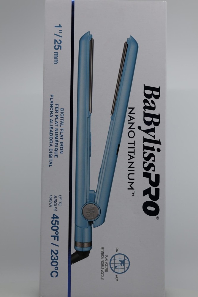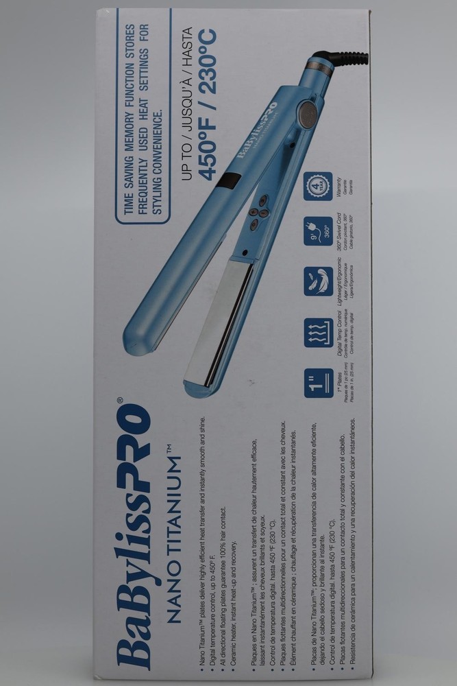 Condition: New Item appears to be new. Achieve salon results right at home with the BaBylissPRO Nano Titanium Flat Iron Hair Straightener. This digital, 1-inch flat iron creates shiny, smooth hair for all hair types. Its professional quality brings salon styling within your reach. The heart of this flat iron is its nano titanium plates. These slim, ultra-smooth plates resist heat damage and corrosion. They spread heat evenly with no cold spots. You get fast, reliable results every time. The ceramic heater ensures instant heat-up so you can start styling quickly. This tool works well for a wide range of hair. Fine, curly, thick, or straight—this flat iron adapts with ease. The temperature goes up to 450°F, so you get the right heat for your specific hair texture. This BaBylissPRO Flat Iron features digital ionic technology. It emits lots of negative ions. These help banish frizz and leave your hair looking sleek. Your style lasts longer and stays shiny. LED temperature settings add accuracy. You can always choose a heat level that’s right for you. The stay-cool housing means you can style longer without discomfort. Even at high heat, your hands will not get hot. The design is ergonomic. This makes it comfortable and easy to control. This flat iron is praised for its lightweight feel. Its slim profile keeps your grip relaxed. You can style longer without your hand feeling tired. The one-inch plates are perfect for most styles. They let you get close to roots or manage shorter hair. The 360° swivel cord avoids tangling. You can move easily and get smooth, professional results without hassle. Another advantage is heating speed. The iron reaches top heat in under a minute. This quick heat-up is important for busy mornings. High heat helps to tame even the curliest or thickest hair. The titanium plates are long-lasting. They do not rust and offer a smooth surface that reduces snags or breakage. Many users say their hair feels softer and looks shinier after use. This flat iron does not have an auto-shutoff feature. Some see this as a safety issue. If you worry about leaving it on, use an external outlet timer. This will shut off power after a set time. Users often mention price. It's a premium product, so it costs more than basic irons. But many agree the results and durability justify the price.