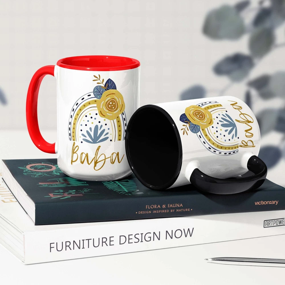 The Baba Rainbow Mug is a novelty coffee mug with a unique design featuring a rainbow pattern, making it a perfect gift idea for Ukrainian grandmas. Crafted from ceramic and with a capacity of 11oz, this white mug stands at 3.75 inches tall and 3.14 inches wide. Proudly made in the United States, this special mug is ideal for enjoying a cup of coffee or tea while celebrating a new pregnancy or baby reveal.