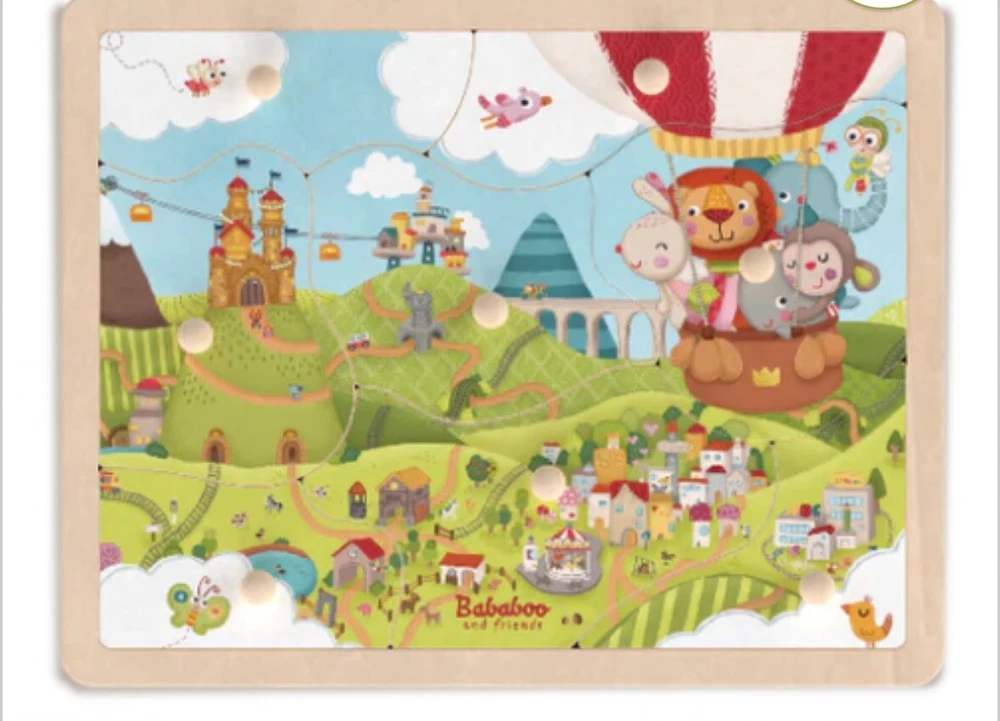 Bababoo and Friends Day and Night Discovery Wooden Puzzle New Sealed Box Bababoo and his friends go on an airy adventure in a hot air balloon. In the evening, Bababoo learns from everyone that even the dark night can shine beautifully! The picturesque 8-piece "Day & Night" puzzle invites you to turn darkness and fear into courage. When all of the puzzle pieces are removed, a magical scene full of twinkling lights is revealed. Once all of the pieces are returned, an enchanting countryside displays the contrast between daytime and nighttime objects and activities. Puzzles are an excellent way to develop fine motor skills and strengthen awareness of numbers, shapes, and the relationship between individual parts and the whole. Additionally, our exquisitely illustrated puzzles stimulate the children's imagination. Puzzles are fun, develop problem-solving skills, and boost children's self-confidence. Age recommendation: 24+ months - Dimensions: 8,66 x 11,02 x 0,79 in -Contents: 9 pieces