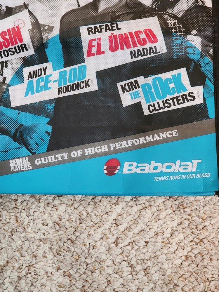 This Babolat Serial Players Carrying Bag is the perfect accessory for any tennis enthusiast. Bag features Rafael Nadal, Andy Roddick, Kim Clijsters & Sam Stosur. Bag can be used for shopping, tennis items or a collectible for tennis fans !! Bag is new, never used. Bag will be shipped folded. Enjoy! CHECK OUT MY OTHER KULE AUCTIONS!!
