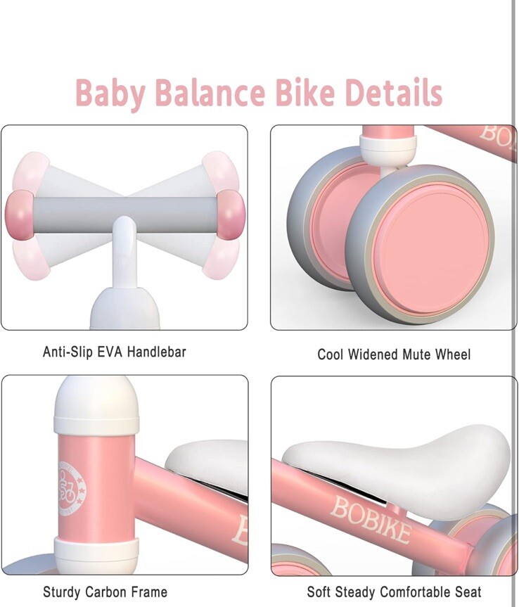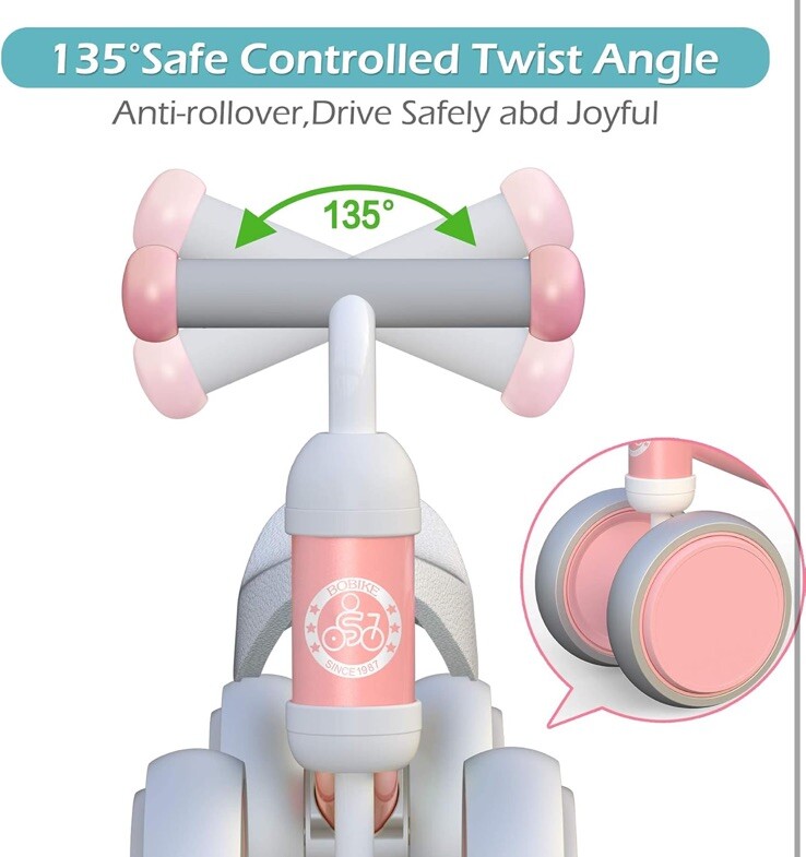 Best Gift: A toy bike Starter ride for your child, the baby balance bike is designed to help children learn the basics of balance, walking and starting to ride. Safety Assurance :ASTM F963-11,EN71 certification. The 135° steering limit design and fully widened closed wheels will avoid side falls or foot damage. Baby Friendly Design: With the bike's strong steel frame, comfortable seats and closed non-slip wheels, you can have peace of mind when guiding your baby on a bike. Minutes to Set Up: Baby bikes are easy to assemble, taking just a few minutes to assemble. You don't need complex or sophisticated tools at all. Indoor and Outdoor Use: Play has never been better! With BOBIKE blance, your child can play inside and outside the house (under your guidance). This is a fun activity for small people and adults.