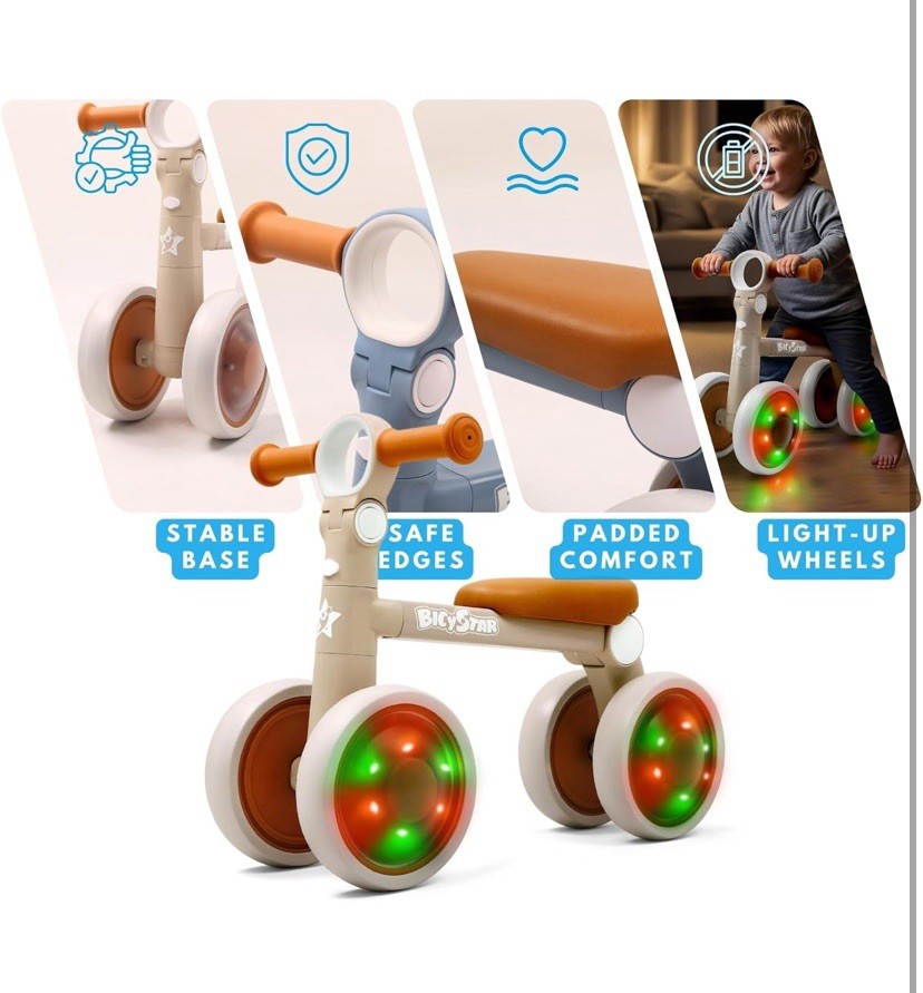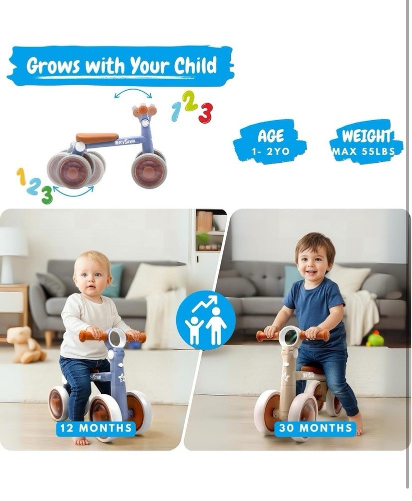 Baby Balance Bike with Adjustable Handlebars, Rear Wheel, Colorful Lighting, Best Gift for 1-2 Years