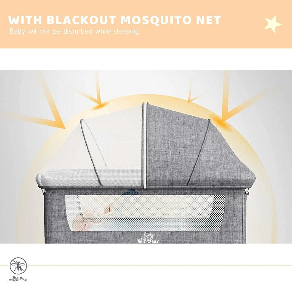 Specification Main Color:Gray Use Case:Bedroom Main Material:Metal+Mesh Details Product Features: baby bedside sleeper is made of comfortable and durable materials. The fabric exceeds safety standards. It can put your baby safely by the bed, making it easier for you to take care of your baby even in the middle of the night . Keep the baby's comfort and closeness with the parents. It can improve your sleep, and convenient for you to take care of your baby at any time. This baby bed can be raised unilaterally to prevent the baby from spilling milk. You can raise one side while feeding the baby, so that the baby can drink more comfortably.Variable cradle design, put down the rocking boards on both sides to turn into a baby cradle, the swing arc is controlled within the scientific range, and will not affect the baby's sleep. Both sides are designed with open meshes, which provide babies with greater ventilation comfort and vision. With a smooth side, it can be used in bedside mode. Stable bottom support and comfortable mattress with sleeping board. With a removable mosquito net, it is very breathable, so that the baby will not be affected during sleep. The cover is detachable, you can remove the side cloth and wash the cover with a washing machine. Give babies a clean and comfortable resting space. It's made of high-strength aluminum frame, light and strong. 6 height adjustment devices, can be easily combined with the parent bed. Retractable feet allow no space under the bed to use. It can also be matched with the height of the dining table, sofa, and so on, to satisfy many environments where you and your baby get along. With four lockable wheels for easy movement.