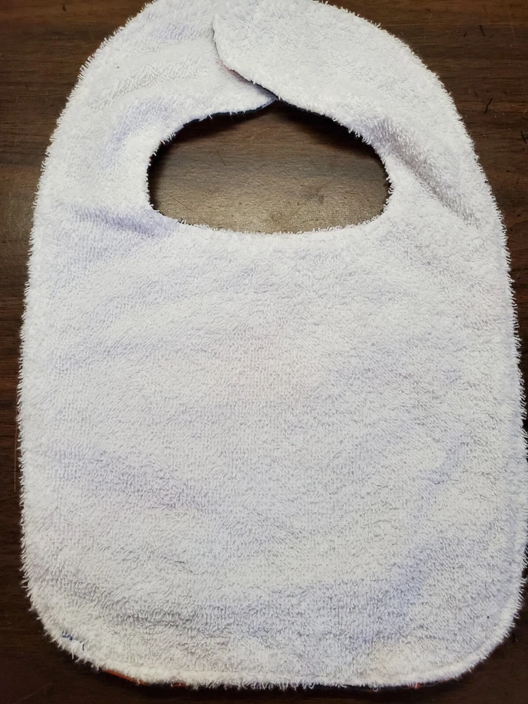 Bibs measure 9 by 14. They are backed with white 'Baby Terry' cloth which is alot softer then regular terry and very absorbent. All have velcro closures Makes great baby shower gifts. I have several different prints in my store plus many other items that I make. I have only made the number listed. Please come visit. Print placement will vary. All returns must be in new and unused condition. Thank you
