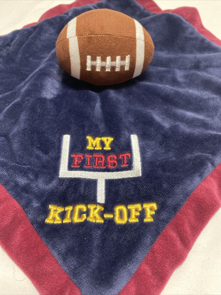 Baby Boy MY FIRST KICKOFF LOVEY BLANKET Baby Essentials Football Sports Navy blu Pre owned in great condition See all photos