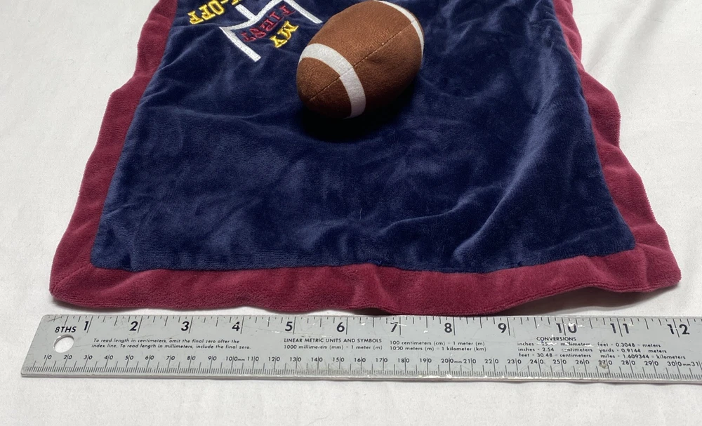 1. This adorable football-themed lovey is perfect for any sports-loving family! The navy blue color is vibrant, and it's incredibly soft—my little one can't get enough of it. Great condition, just as described.