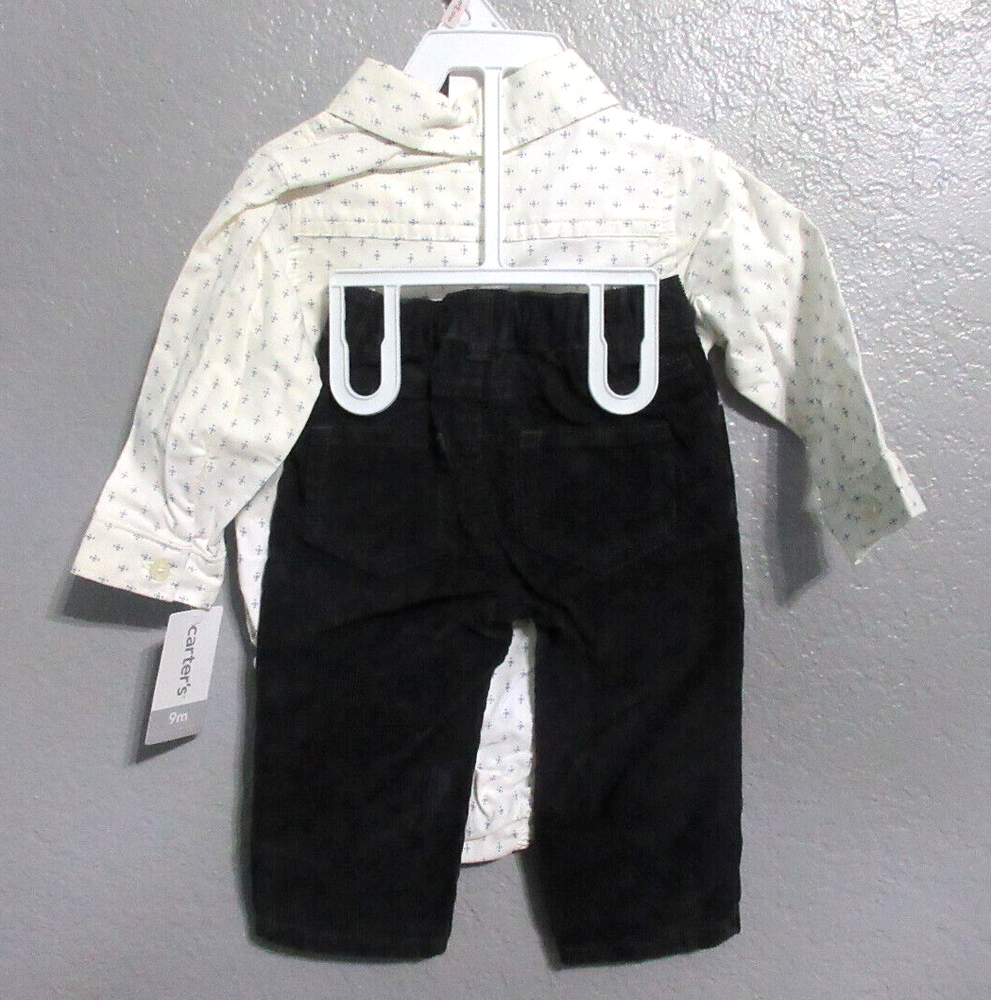 Closure: Button Type: Outfit/Set Number of Pieces: 2 Piece Material: 100% Cotton, Cotton Handmade: No Sleeve Length: Long Sleeve Size: 6-9 Months Color: Black Season: Fall, Spring, Summer, Winter Occasion: Formal, Party Department: Boys Brand: Carter's